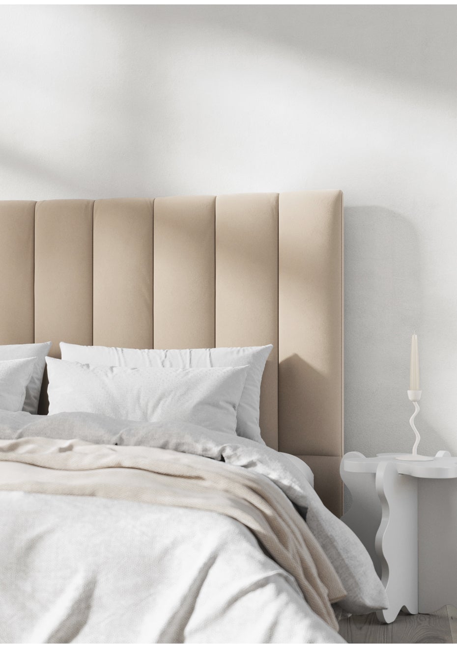 Upholstered in soft textural velvet fabric, this headboard is the perfect feature for your bedroom. The on-trend design gives a nod to 70’s aesthetic in a natural colour that pairs back beautifully with any bedding.