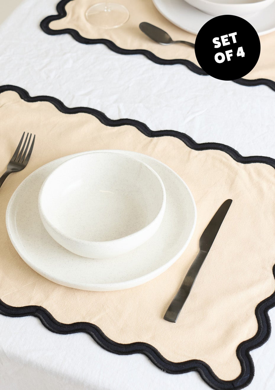 George Collective - 100% Cotton Wavy Edge Placemat Set of 4 - Crème/BlackCLEARANCE