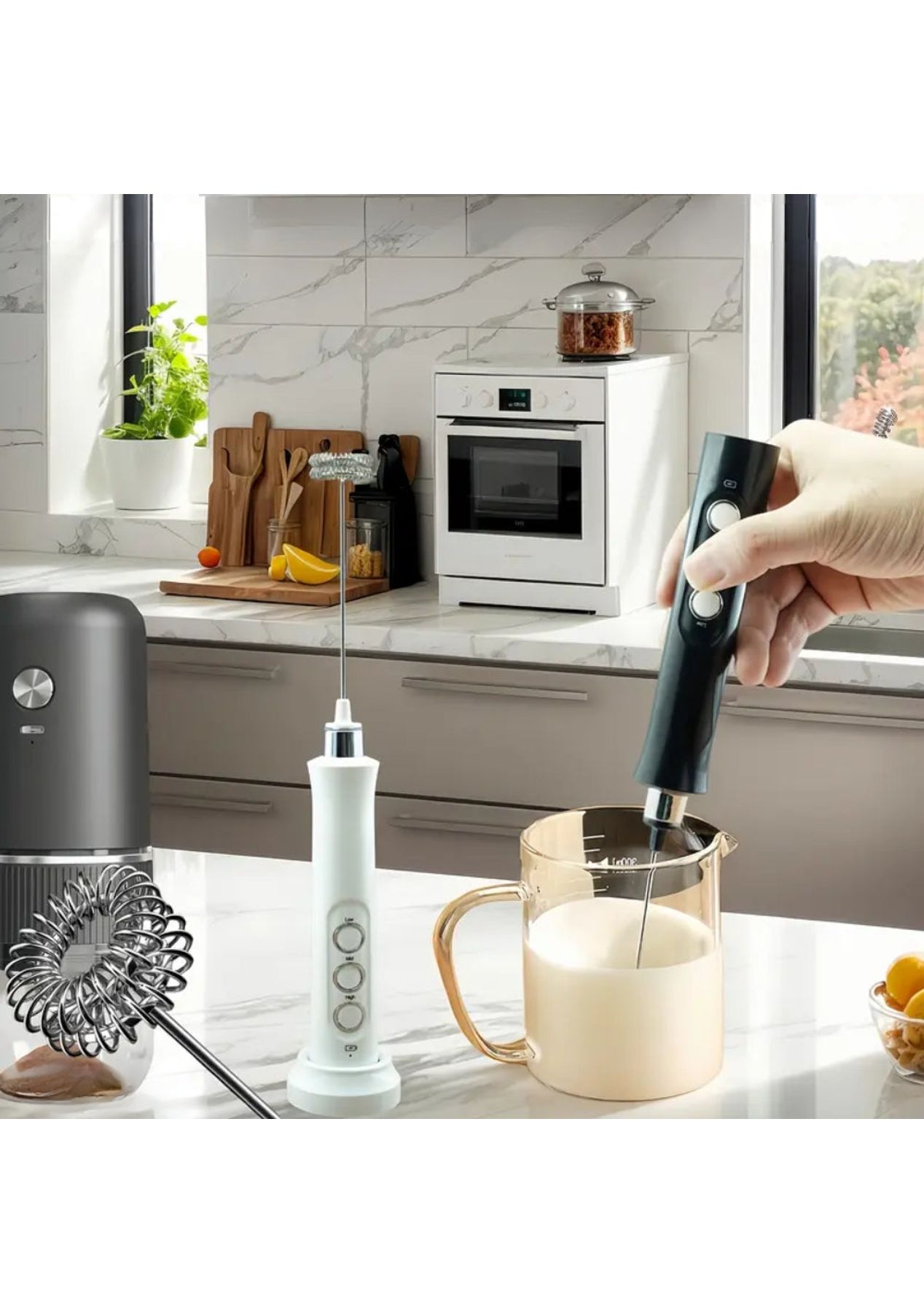 Rechargeable Electric Milk Frother 3 In 1 Handheld Mixer - Black