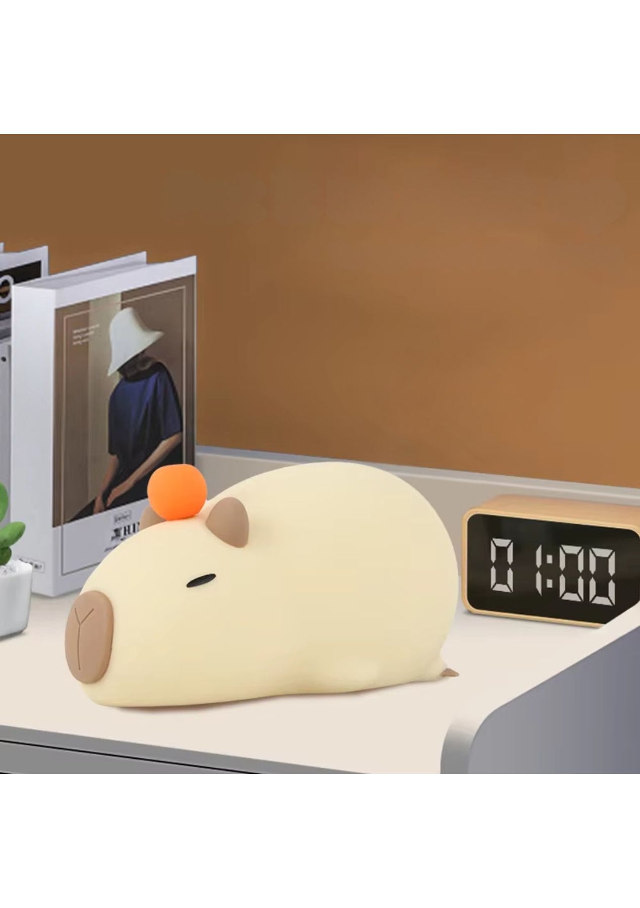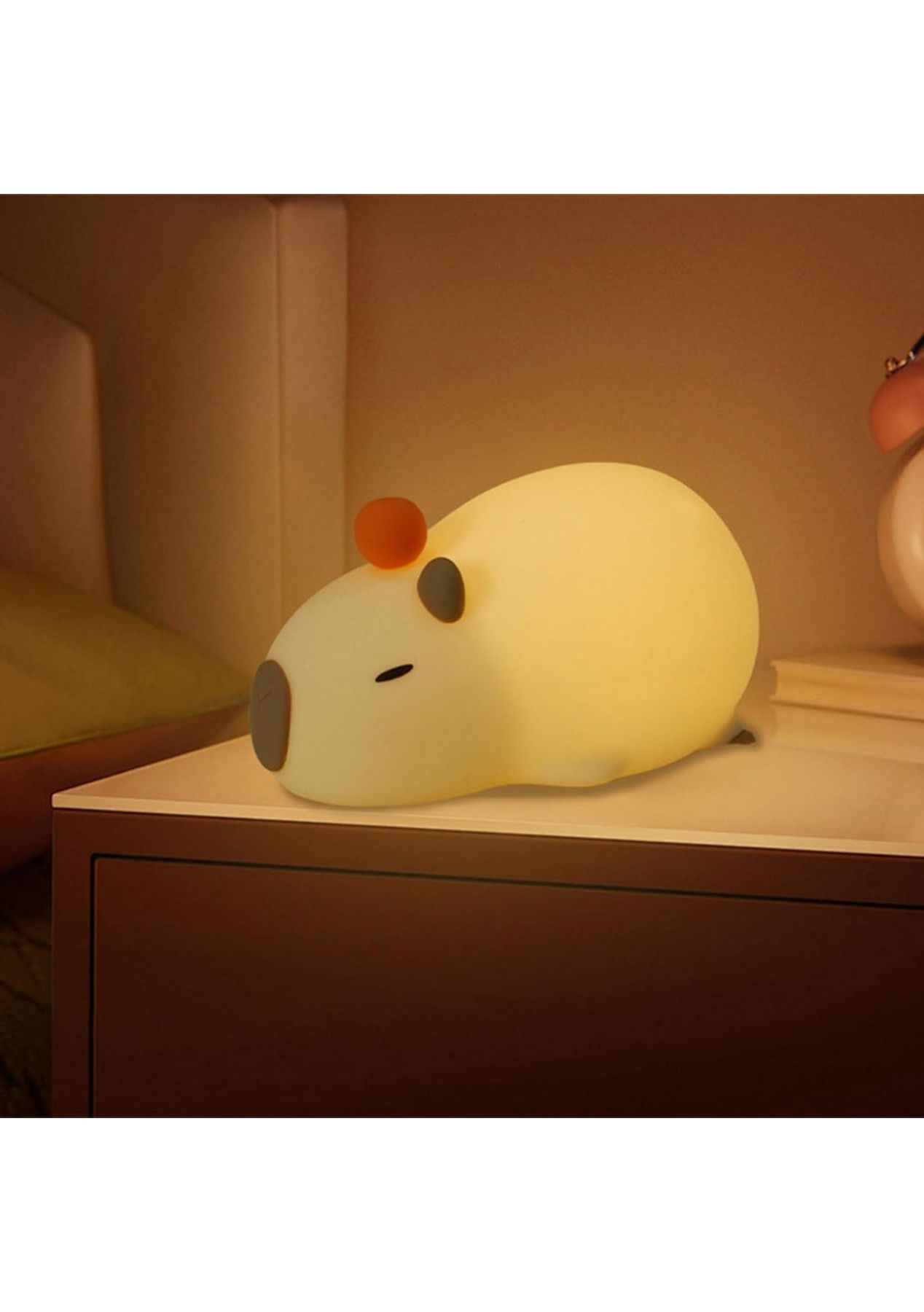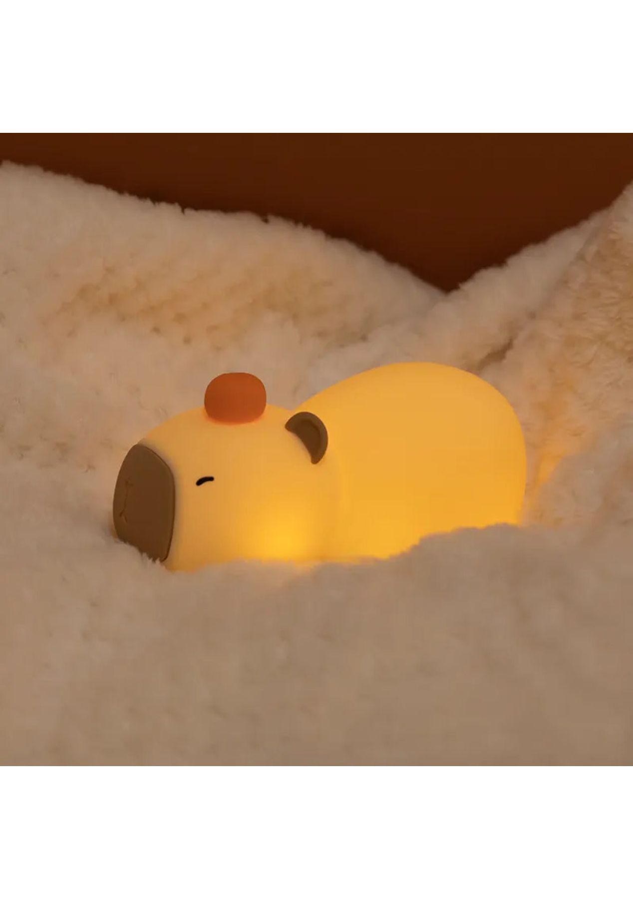 Product Description:The Capybara Night Light, crafted from high-quality food-grade silicone, offers a safe, waterproof, and anti-drop design. It provides a comforting, gentle glow throughout the night, creating a cozy and secure atmosphere for your child without disturbing their sleep.This night light is not just functional but also adds a decorative touch to any room. With its cute cartoon design, it brings joy and warmth to your space, making it perfect for children's rooms and study areas.Designed for versatile use, the Capybara Night Light is ideal for illuminating bedrooms, study rooms, and children's spaces. Its delightful appearance enhances home decoration while also being a practical lighting solution.With a built-in rechargeable battery, the light offers convenient charging via Type-C and provides up to 24 hours of continuous illumination. Its eye-friendly LED light reduces eye strain and creates a calm, soothing environment, making it perfect for children and travel.Product Specification:Material: ABS + Silica gelColor: BrownRated Power: 0.5WRated input: 5V 0.5ABattery capacity: 1200mahCharging Time: About 3.5hoursUsage Time: High-end about 16hours, Low-end about 56hoursModel E Size: 13.8 x 9 x 11 cmModel B Size: 11 x 16.5 cmModel D Size: 14.8 x 7.1 cmWeight: 226gFunction: Night lightPackage Inclusion:1 x Night Light1 x USB Cable1 x User Manual