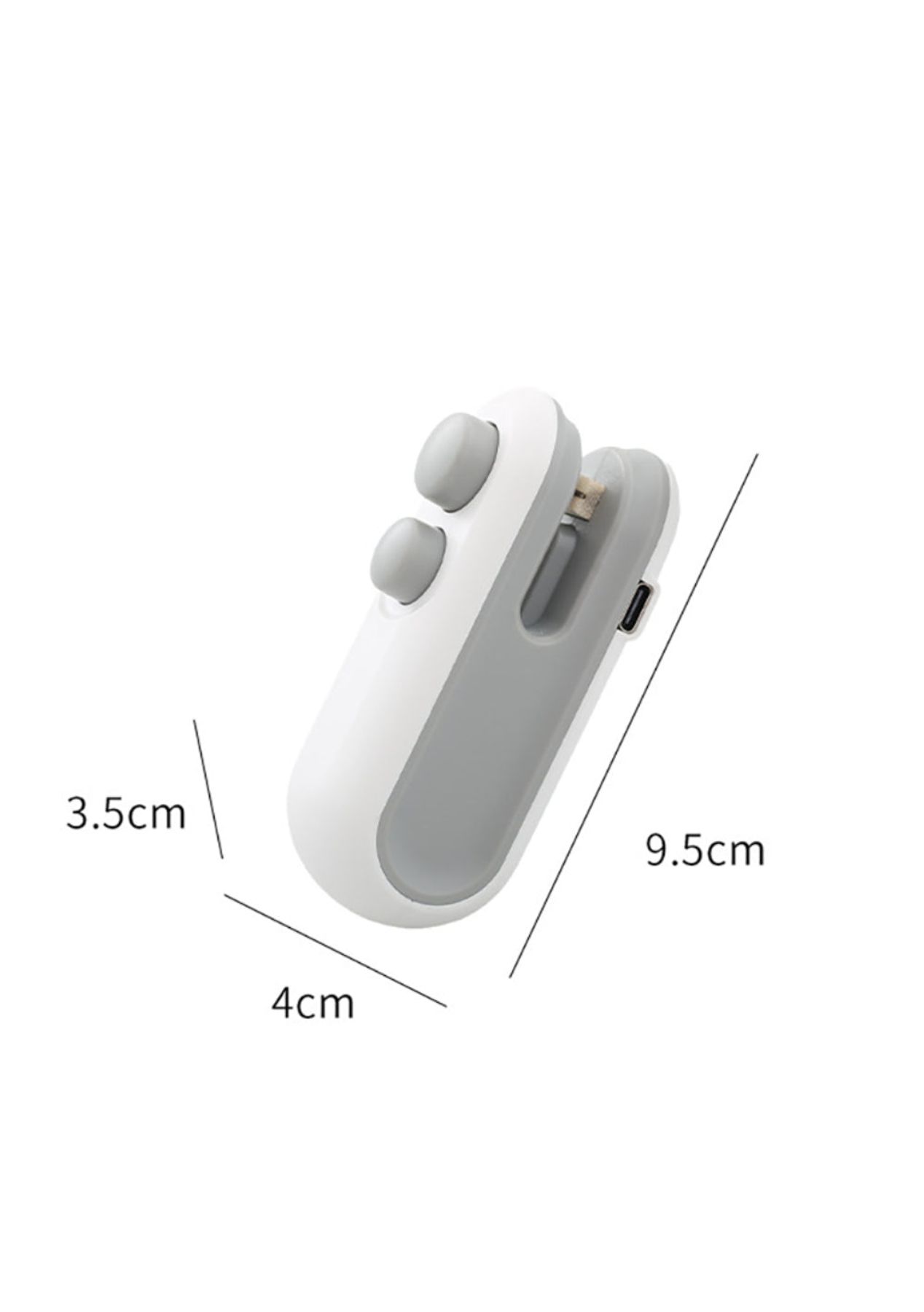 Product Description:The Mini Sealer is the ideal solution for keeping your food fresh and safe from germs. Made from high-quality ABS material with a compact and convenient design, this sealer fits perfectly in any kitchen. Its stylish white and blue appearance adds a modern touch, and its compact size makes it easy to store or take on the go.Equipped with a key control mode and a Type-C charging interface, the Mini Sealer is simple to use and recharge. It operates efficiently with a 5V charging voltage, making it a budget-friendly option for your home. Its compact size and portability allow you to seal bags anytime, anywhere, making it perfect for small kitchens or travel.This sealer is not only a convenient bag sealer but also comes with a built-in magnetic design, allowing for easy attachment to any surface. It includes a cutter blade, making it a multifunctional tool that can open and seal snack bags, candy bags, chip bags, and more, providing a versatile solution for all your storage needs.The Mini Sealer heats up quickly, offering a fast, efficient seal with an airtight and waterproof finish every time. With USB rechargeable capabilities, it provides a durable and energy-saving option for sealing bags on the go, ensuring freshness without the hassle of leaks or wasted time.Product Specification:Material: ABS + Magnet + Electronic componentsColor: White, BlueCharging interface: Type-CCharging voltage: 5VBattery Information: 400mAhWorking Time: 30 timesStandby Time: 30 daysSize: 9.5 x 4 x 3.5 cmWeight: 90gFunction: Mini SealerPackage Inclusion:1 x Mini Sealer 1 x USB Charging Cable1 x Manual