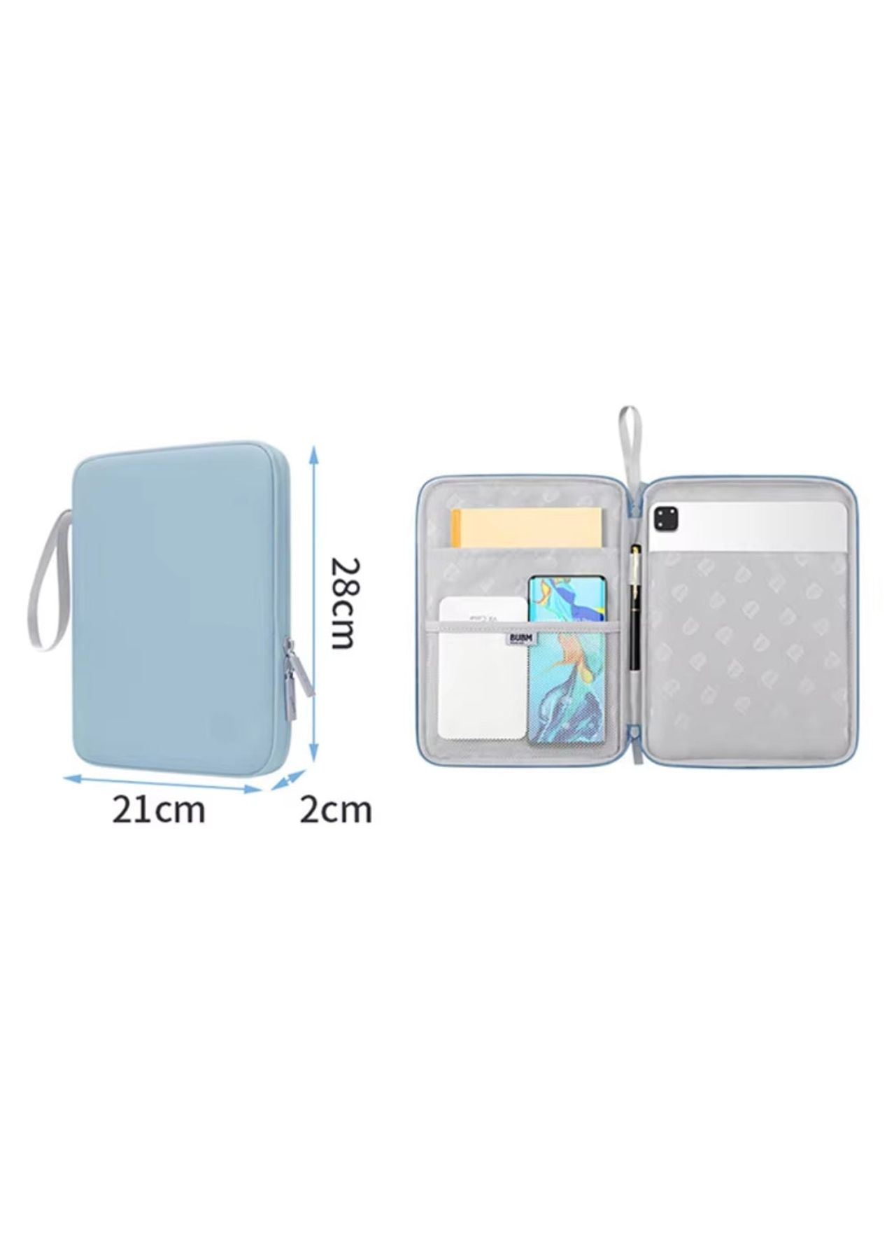 Product Description:The Sleeve Bag for iPad is a must-have travel accessory designed for the 10.9-inch iPad. Its lightweight and portable design make it perfect for protecting your tablet while on the move. Crafted with high-quality PU material, the sleeve is both wear-resistant and waterproof, ensuring your iPad remains safe from spills, scratches, and everyday wear and tear.The exterior features a sleek design, while the soft interior lining keeps your iPad’s screen free from damage. A top-loading zipper provides easy access, and the handle adds convenience for carrying. This combination of style and practicality ensures your device is both secure and easy to transport.Its slim design allows it to fit into your bag or backpack without adding bulk. Whether commuting, traveling, or simply heading out for the day, the sleeve bag provides a compact and secure way to store your iPad.Protect your iPad and make travel easier with the Sleeve Bag for iPad, designed for effortless carrying and reliable protection wherever you go.Product Specification:Material: PlutoniumColor: Black, BlueSize: 28 x 21 x 2 cmWeight: 146 gFunction: Sleeve Bag for iPadPackage Inclusion:1 x Sleeve Bag for iPad