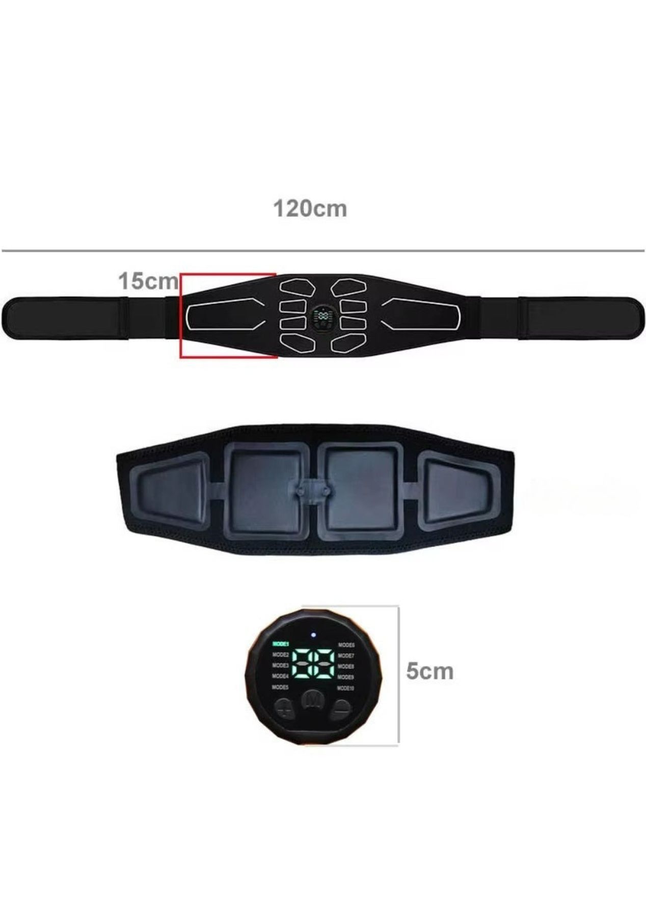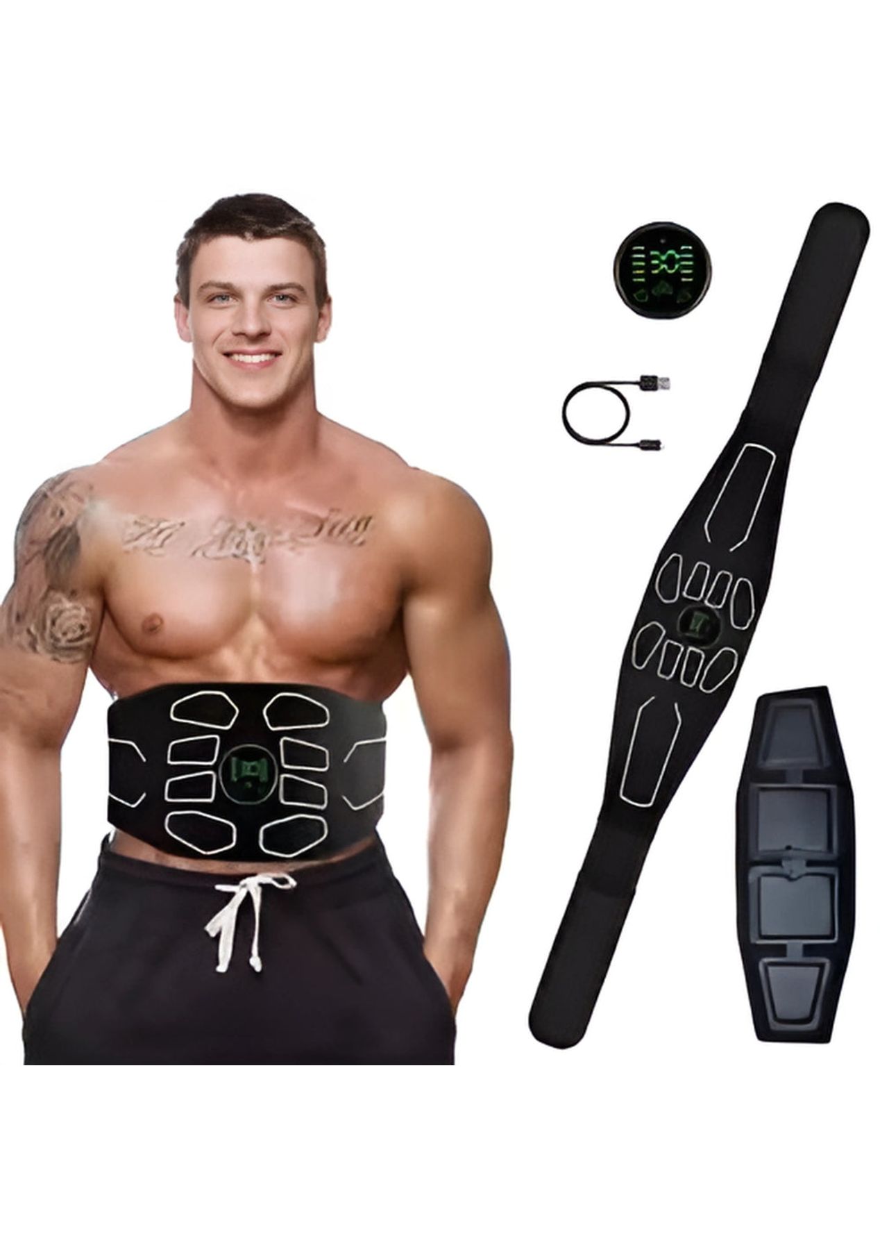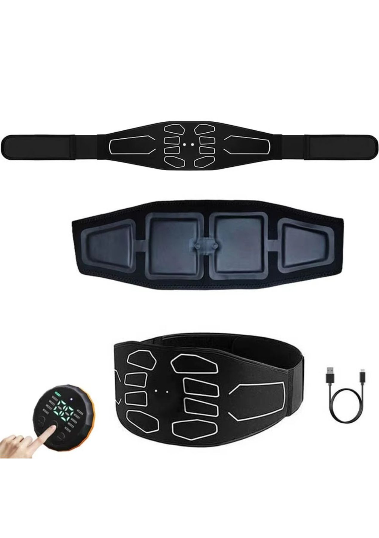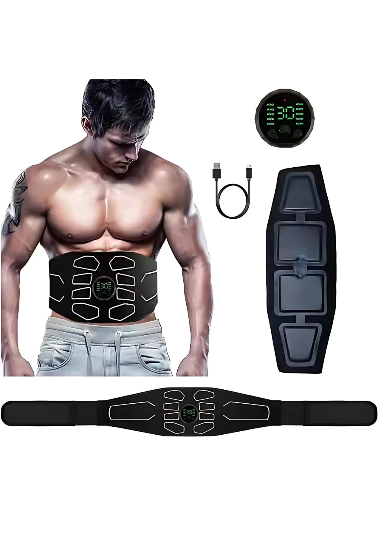 Product Description:The EMS Muscle Stimulator is a great tool for improving muscle strength and tone. Made with high-quality materials, it's designed for both men and women. Whether you're at home or on the go, this stimulator provides effective workouts that target different muscle groups.It offers 10 modes and 30 intensity levels, allowing you to adjust the settings for your personal fitness needs. The belt, which is 120cm long, ensures a comfortable fit, and the compact design makes it easy to take with you wherever you go.This device helps build muscle, boost endurance, and promote relaxation. It's easy to use and adjust, making it suitable for all fitness levels.For best results, dampen the pad or your skin slightly before use to enhance the stimulation. Simple and effective, the EMS Muscle Stimulator is a great addition to your fitness routine.Product Specification:Material: OK fabrics + ABSColor: BlackWorking voltage: 3.7VWorking temperature: 10-40‚ÑÉCharging voltage: DC 5VBattery capacity: 150mAhCharging time: 1-2 hoursUse time: 6-10 hoursSize: 120 x 15cmWeight: 167gFunction: Massager Waist Belt Package Inclusion:1 x EMS Muscle Stimulator Device 1 x Set of Pads 1 x USB Charging Cable