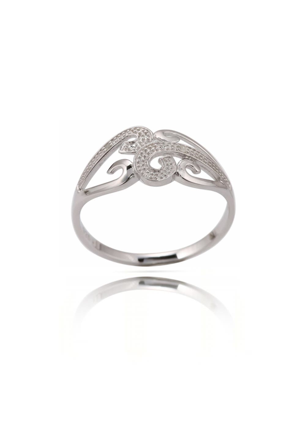 This gorgeous sterling silver scroll style ring will enhance any outfit. The specifications of the ring are as follows: Metal : sterling silver Plating : white gold rhodium Colour : H Clarity: PK2/3 Number of diamond: 2pcs Total diamond weight: 0.01cts Sizes available include N, and; O Wave Design Dimension: 200mm W x 80mm D