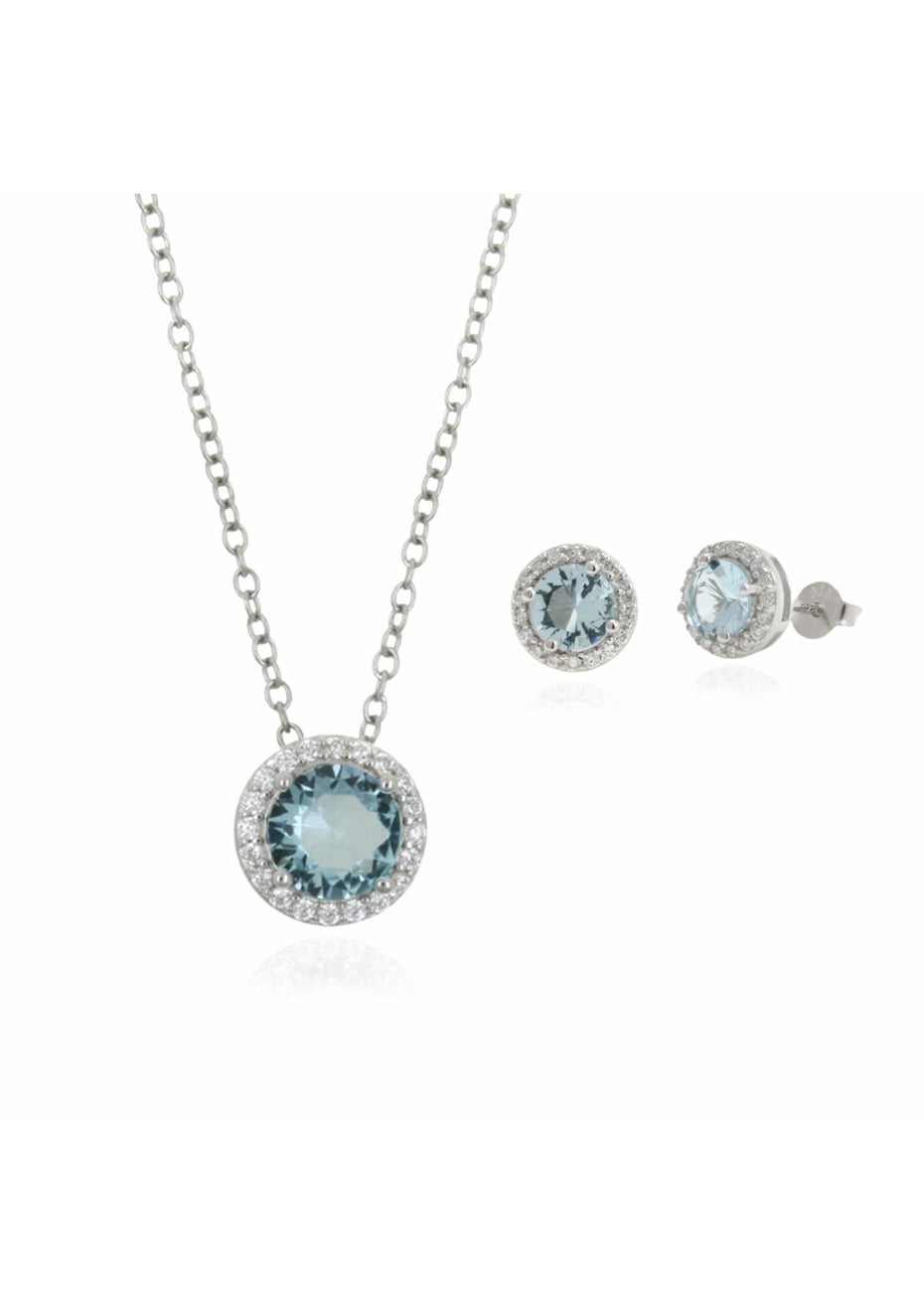 Sterling Silver 3.57ct TW Aqua CZ Halo Earring & Pendant Set