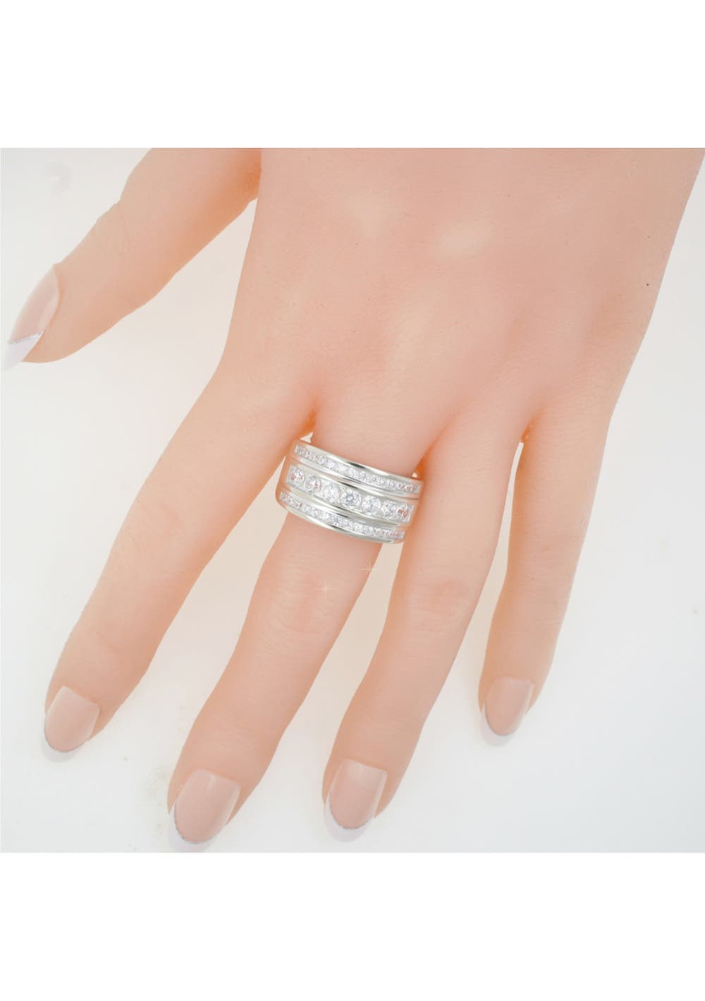 Sterling Silver 3 Row CZ Dress Ring