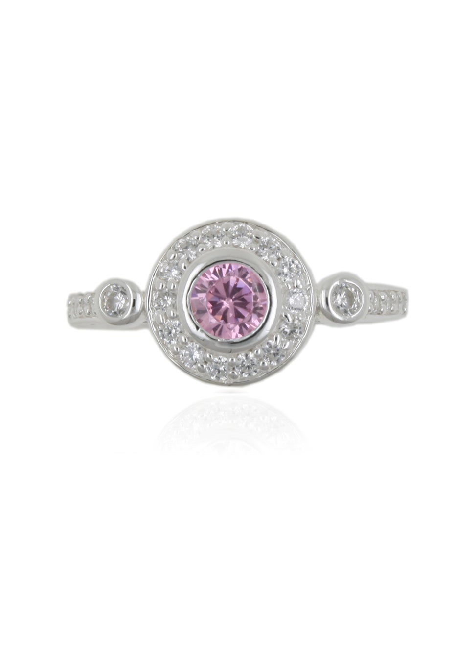 Sterling Silver Pink CZ Halo Ring