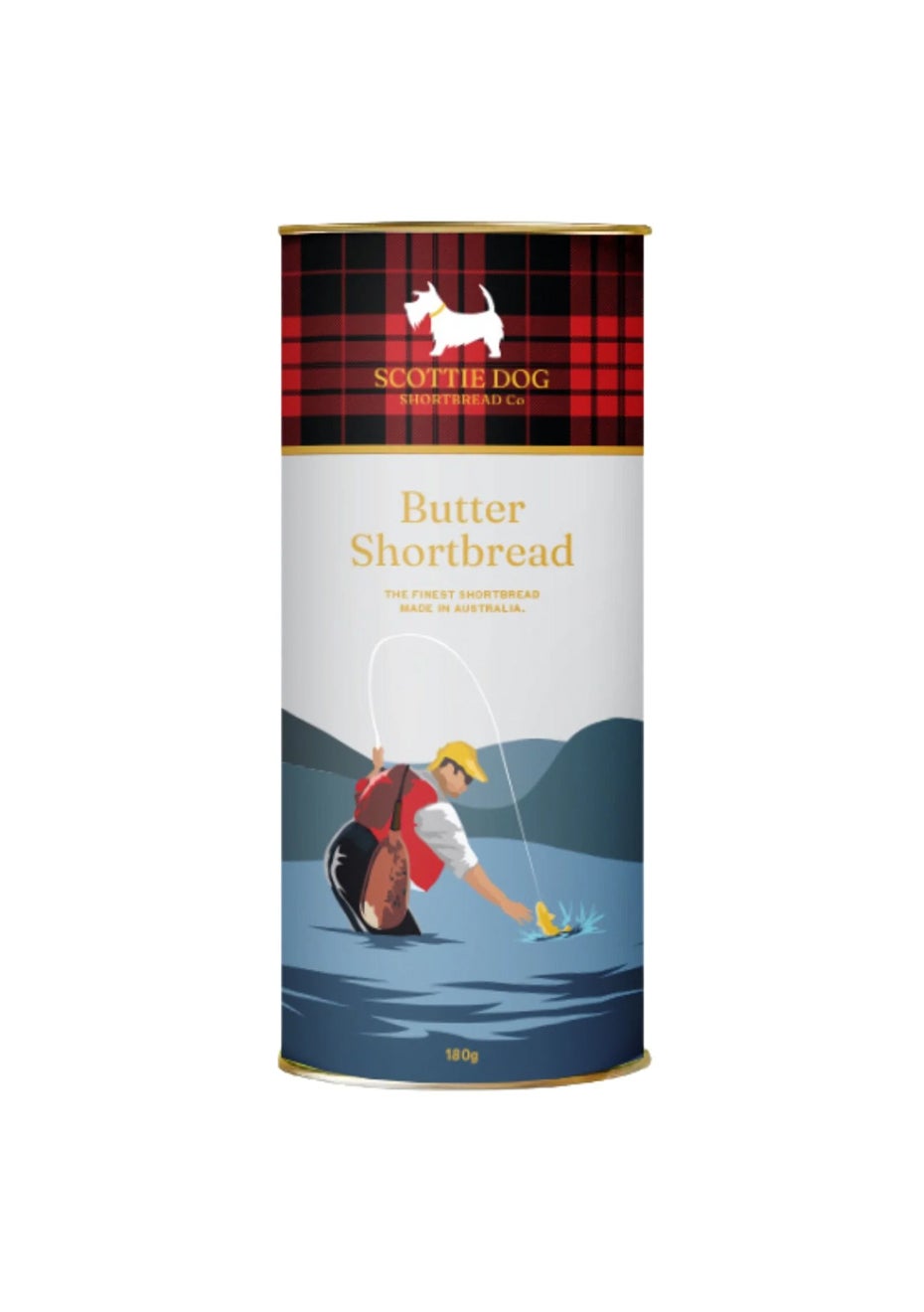 Buttery Australian made shortbread in a fun fishing themed tube from the Scottie Dog Shortbread Co. Perfect for Christmas Gifting.