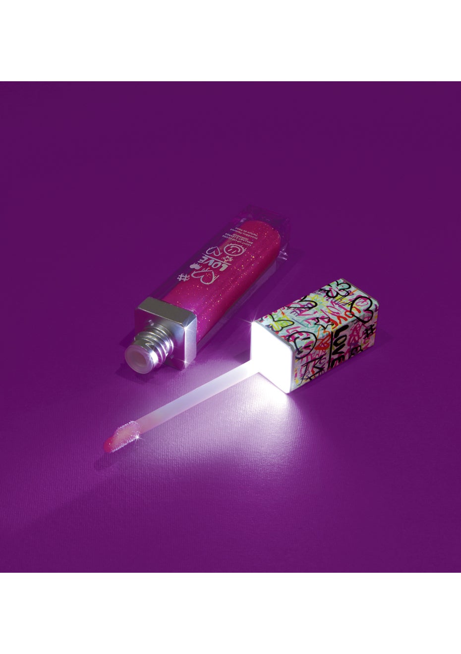 A dynamic duo! This pair of lip gloss wands are Lit! Literally! Unscrew the graffiti adorned cap and the lid and wand light up! Use pink or lavender shimmer glosses- one of each included in each set. Light up you gloss and your smile. So much fun to show off a hidden feature any tween or teen will love! Contains 2 scented, light up lip gloss wands with graffiti graphics on cap. Ages 6yrs+.