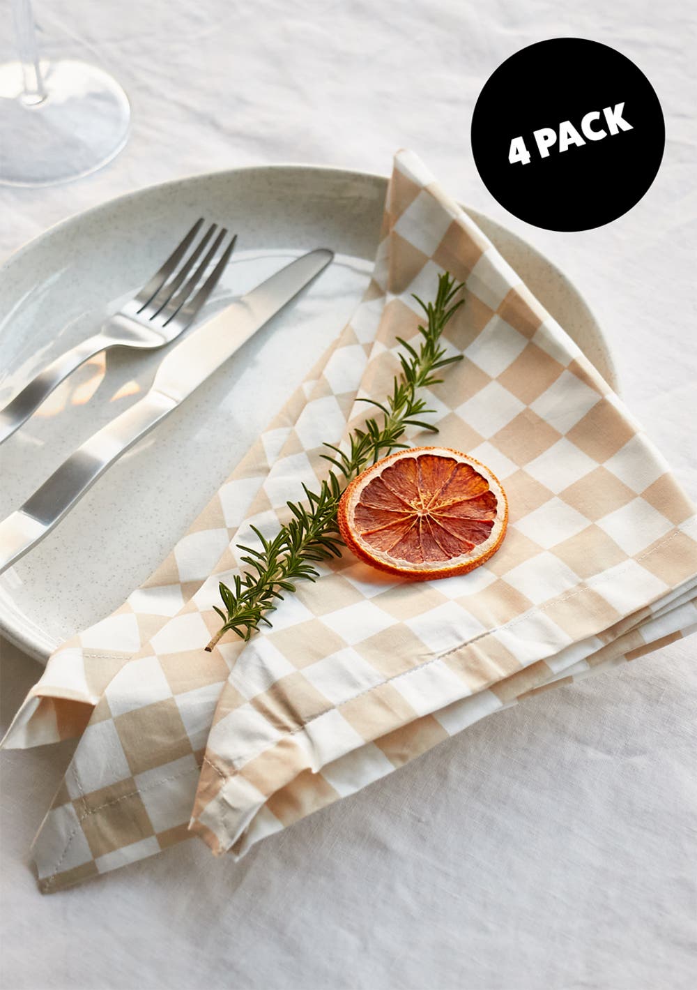 George Collective - 100% Stonewashed Cotton Napkin 4 Pack - Checkerboard Natural