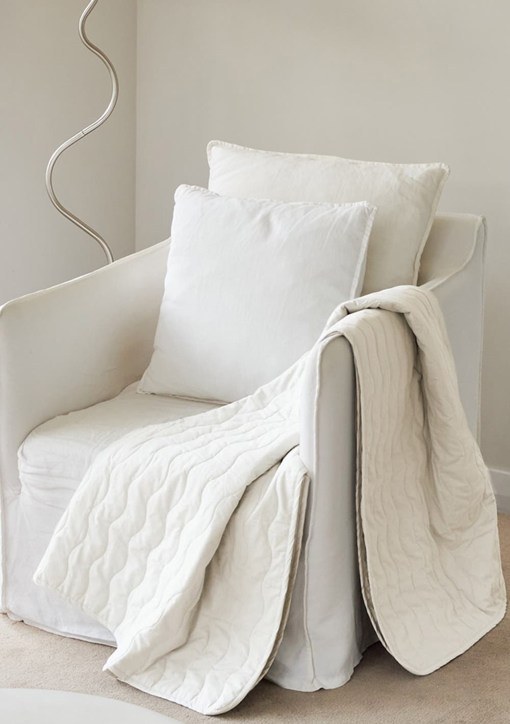 George Collective - 100% Stonewashed Cotton Quilted Throw - Warm WhiteCLEARANCE