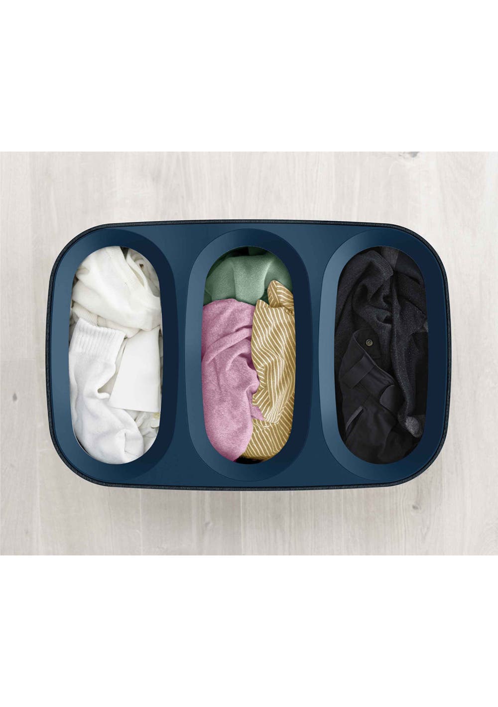 This smart laundry basket features a host of practical features that help make wash day less of a chore. Beneath the lid it has three 30-litre fabric tote bags allowing you to separate washing into light, dark and coloured fabrics. Each bag has handles at the top enabling you to conveniently lift and carry it straight to the machine and a helper handle on the base to make emptying easier. When replacing each bag in the basket there’s no fiddly ties or buttons to do up either as the self-locating rim ensures it drops perfectly back into place, ready for the next load. The stylish fabric exterior is designed to compliment a range of interior styles and decors making it perfect for storing in the bathroom, bedroom or utility room. Comes flat-packed with full assembly instructions.