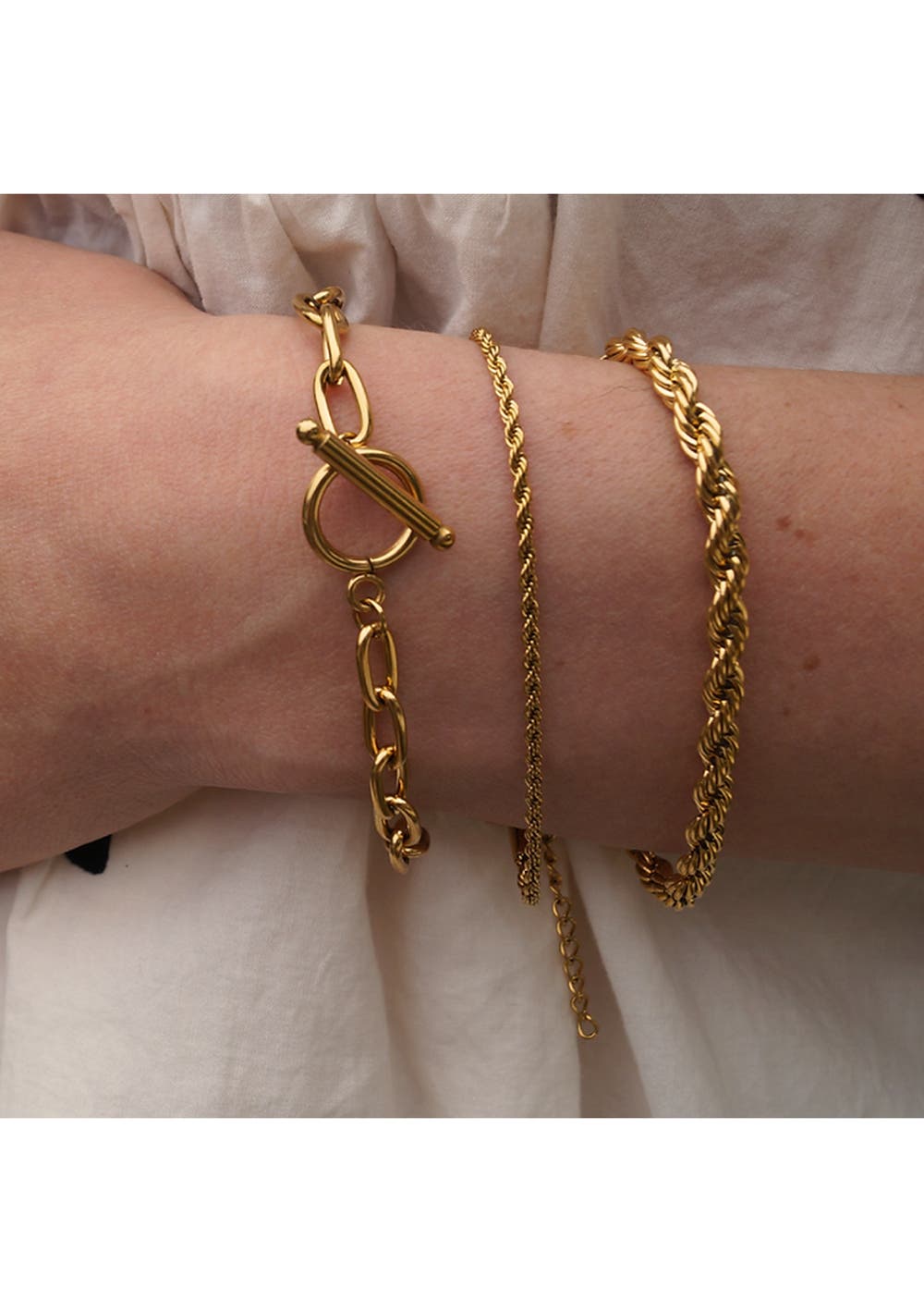 Introducing the stunning Stevie bracelet, a timeless and elegant piece that is sure to elevate any outfit. Material : Stainless Steel + 18k Gold Plated & Water, Sweat, Heat Resistant (Long-wear before tarnishing)
