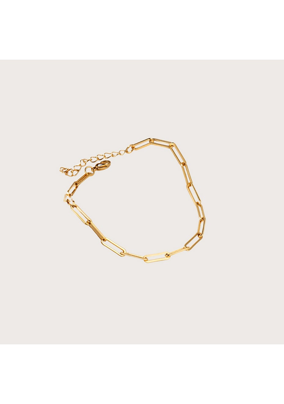 Introducing the stunning Elsa bracelet, a timeless and elegant piece that is sure to elevate any outfit. Length: 17cm +3cm adjustable length. Material : Stainless Steel + 18k Gold Plated & Water, Sweat, Heat Resistant (Long-wear before tarnishing)