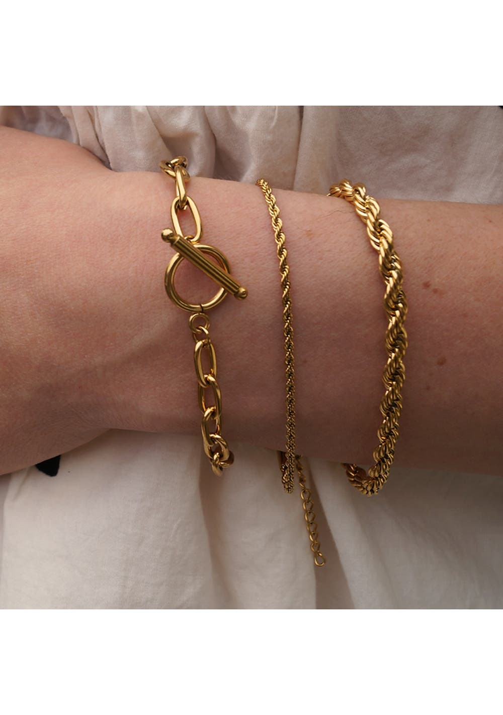 The Sofia bracelet is the perfect combination of style and functionality. Material : Stainless Steel + 18k Gold Plated & Water, Sweat, Heat Resistant (Long-wear before tarnishing)
