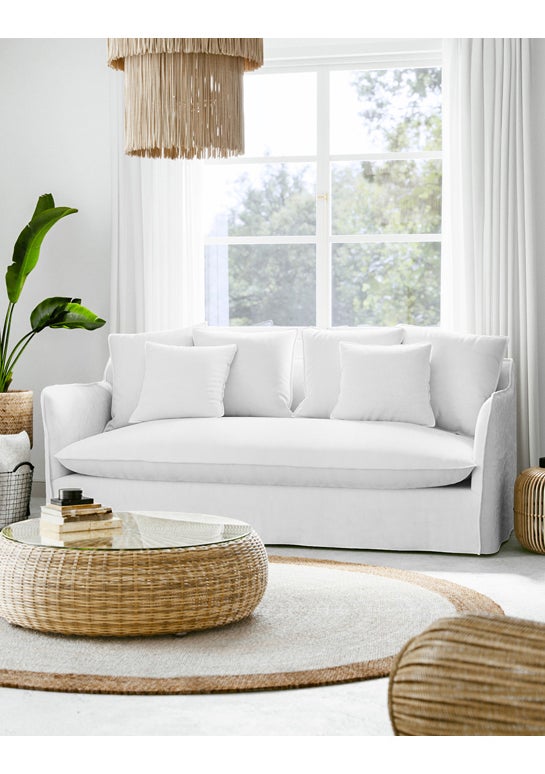 George Collective - Soho 100% Linen 3 Seat Sofa - WhiteCLEARANCE