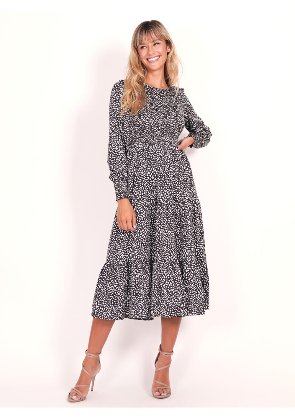 Leoni - Pheonix Round Neck Dress - Black Cheetah - No Lining