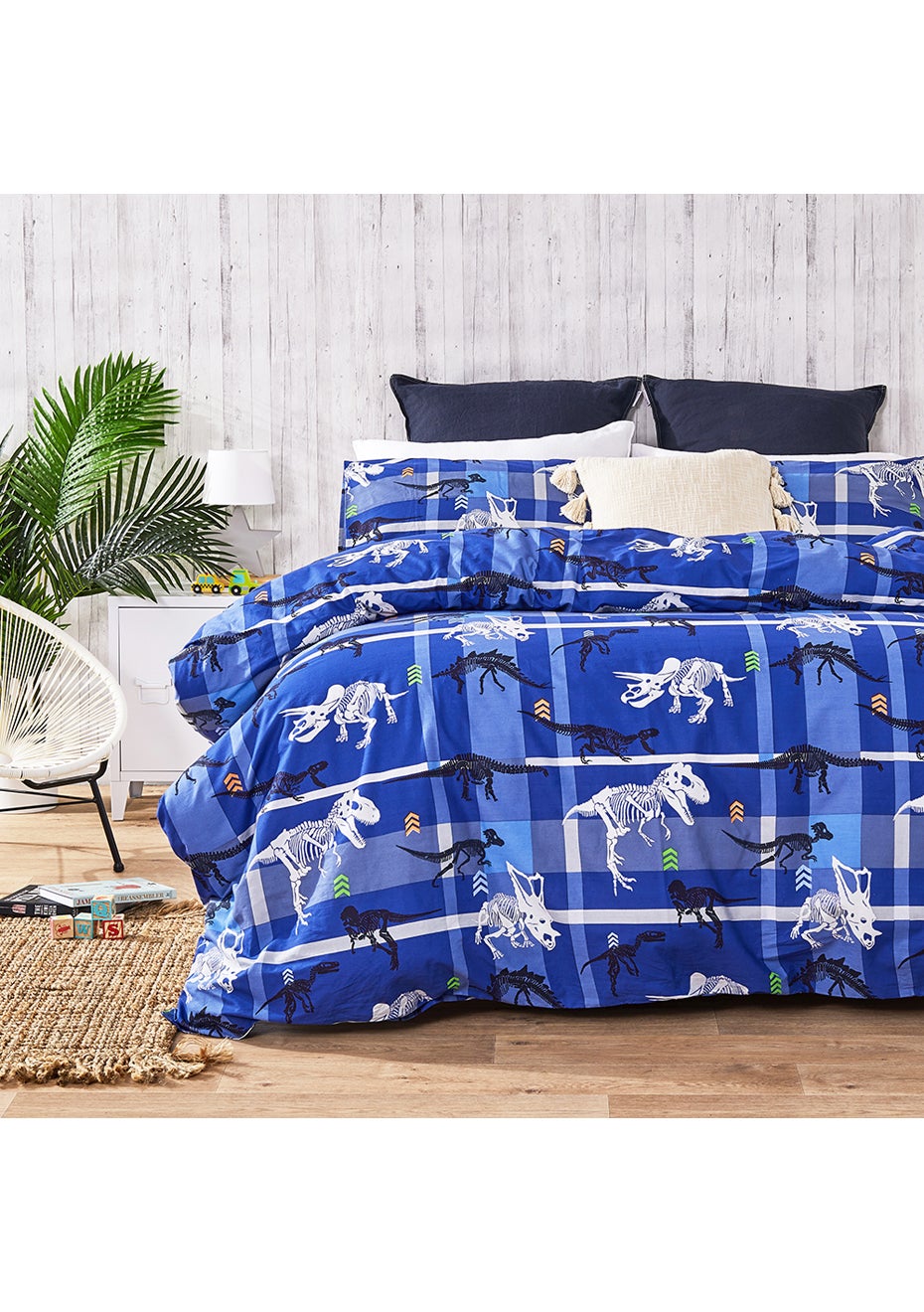 Twill & Co Dino OCS Organic Cotton Duvet Cover Set Blue King Single