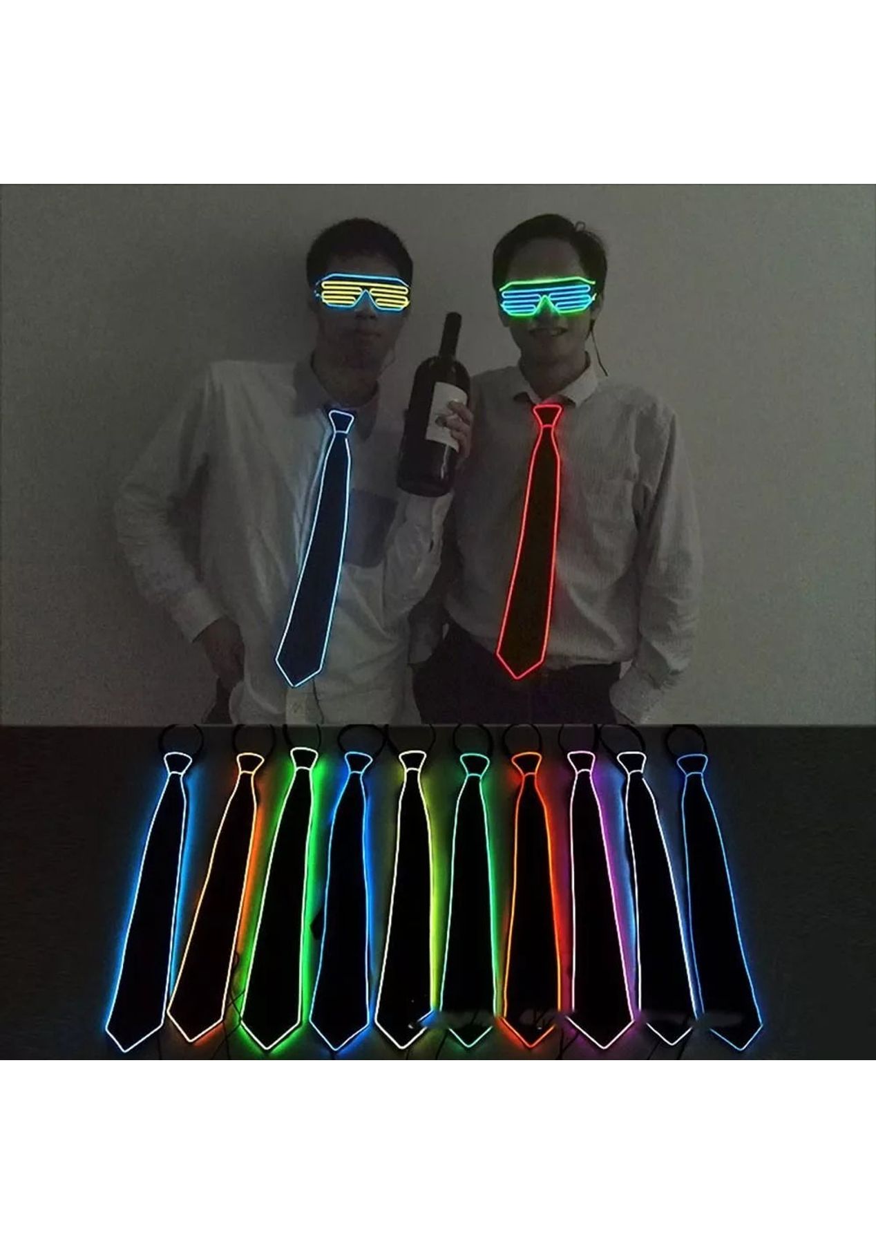 Product Description:The LED Glowing Neon Tie is a unique party accessory that adds fun and style to any occasion. Its battery-powered design makes it easy to use, with the controller case conveniently clipped to your belt or pocket, ensuring no cluttered wires. The light-up tie operates with a switch controller, providing a simple on-and-off function for a glowing effect.The tie is adjustable, allowing for a comfortable fit with a zippered design. It can easily be adjusted to fit different neck sizes, ensuring smooth and hassle-free wear. The lightweight material ensures that the tie sits comfortably without causing any discomfort, making it ideal for long hours of use.This neon tie is perfect for a wide range of events, including Halloween, carnivals, neon parties, and performances. Its glowing effect adds a touch of flair to any outfit, making it suitable for costume parties, dance performances, and more.Made from high-quality EL wire and durable polyester, the tie is designed for long-term use. The materials offer resistance to wear and tear, ensuring that the tie provides a dazzling visual effect and longer luminous time during night events.Product Specification:Material: PolyesterColor: Blue, Orange, Red, White, Green, Pink, Sky BluePowered By: 2 x AA Batteries (Not Included) Input voltage: DC 3VGlowing Time: 3-15 hoursSize: 8 x 48 cmWeight: 85g Function: LED Glowing Neon Tie Package Inclusion:1 x EL Tie 1 x 3V Battery Case & Controller