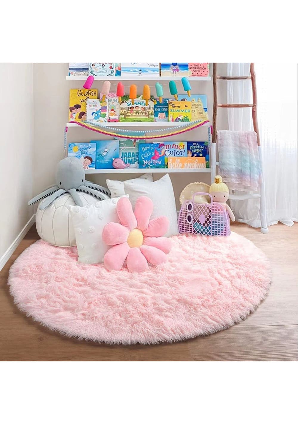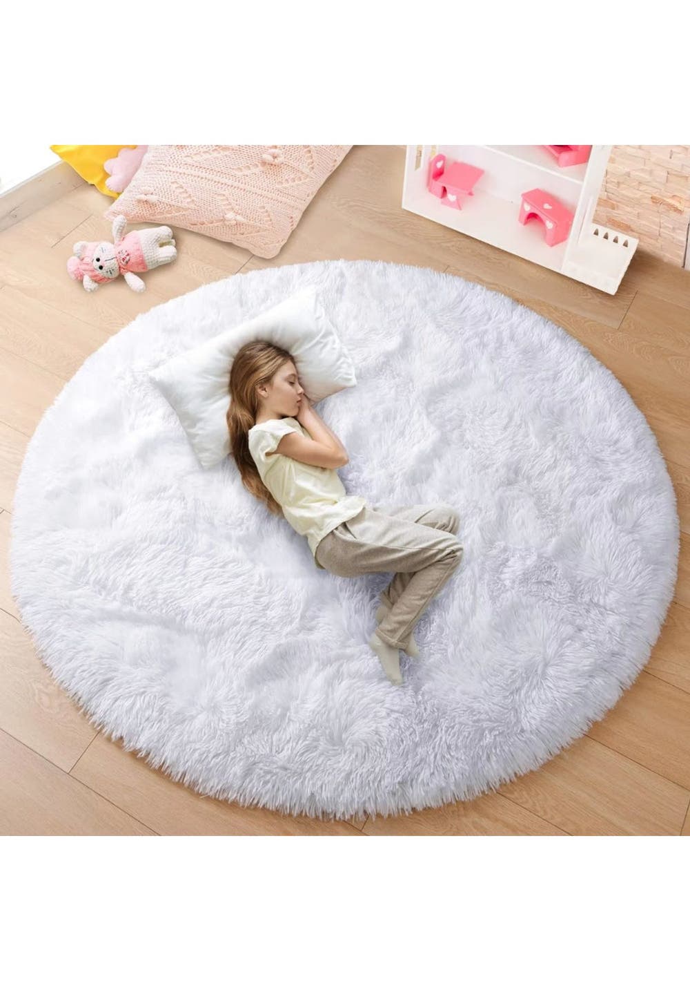 Ultra Soft Fluffy Round Shaggy Rug Carpet for Kids Bedroom - White