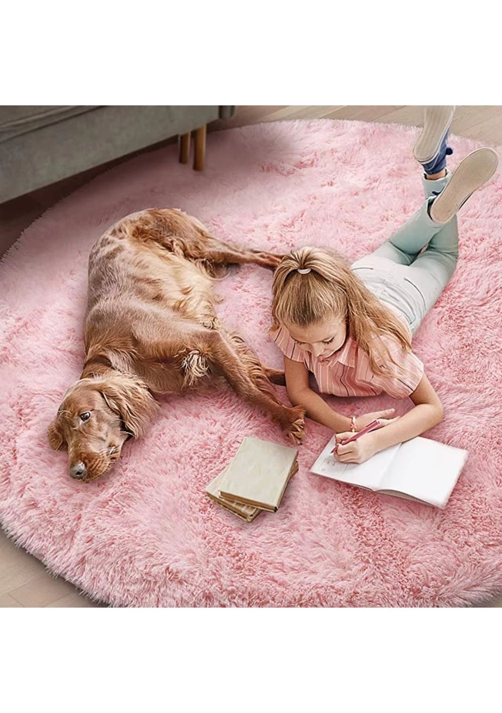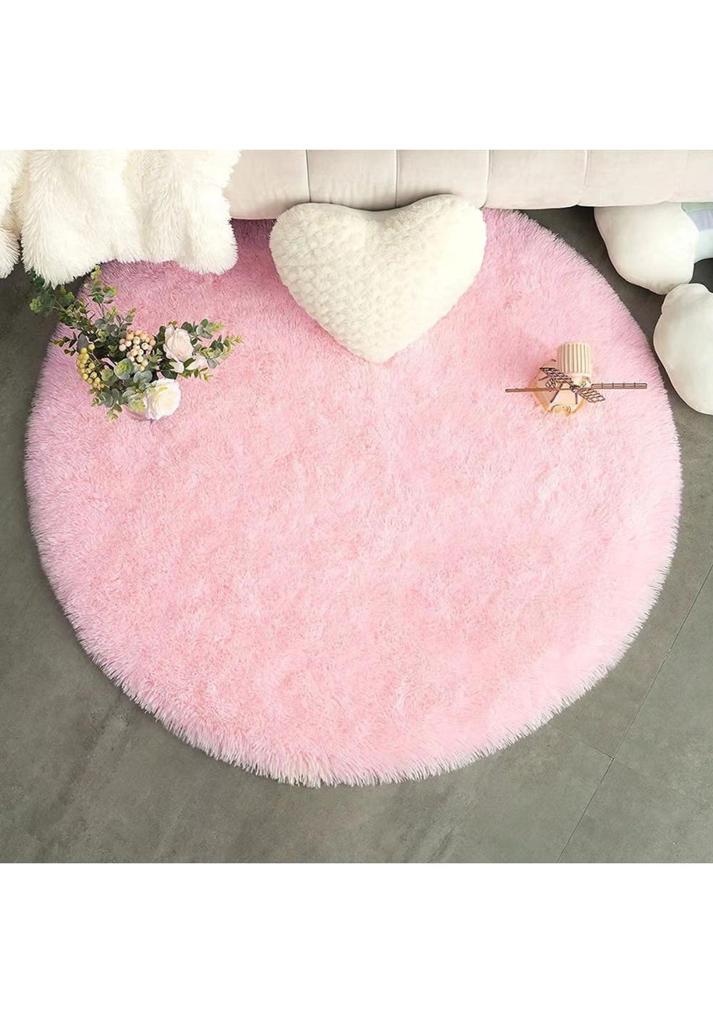 Product Description:Experience the comfort and style of the Ultra Soft Round Shaggy Rug, crafted from 100% polyester microfiber for a luxurious, silky feel. This lightweight rug offers a plush texture, perfect for adding warmth and softness to any room. With its classy design, it's an elegant addition to any decoration.Built for durability, the rug features long hair fabric, a memory foam layer, and an anti-slip bottom, all seamlessly stitched together for long-lasting use. Its non-shedding, fade-resistant materials ensure it maintains its beauty and softness over time, making it an ideal surface for children, pets, or even a cozy spot for photography props.Versatile in function, the Ultra Soft Round Shaggy Rug protects floors while providing a soft, cushioned area for play, naps, or lounging. It can be easily cleaned with a vacuum or a quick shake, keeping it fresh and neat, even after spills or messes.Not only is this rug a practical addition to any space, but it also adds a decorative touch. Its chic appearance makes it perfect for kids' rooms, playrooms, nurseries, living rooms, and bedrooms. It’s a thoughtful gift for any occasion, offering both comfort and style.Product Specification:Material: 100% Polyester MicrofiberColor: White, Grey, Pink, GreenSize: 100cm, 120cm, 140cm, 160cmWeight: 492gFunction: Shaggy RugPackage Inclusion:1 x Shaggy Rug
