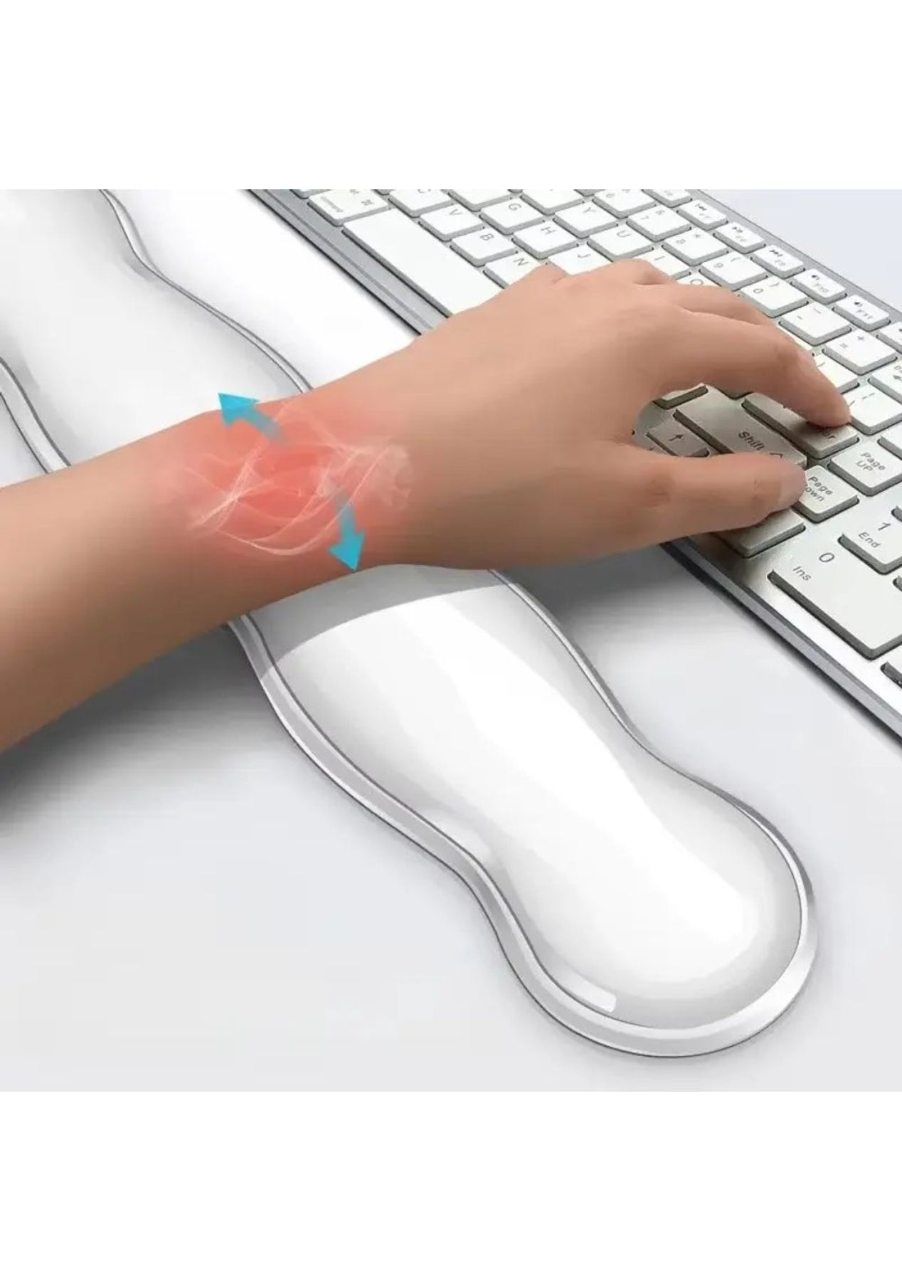 Product Description:The Mouse Pad with Wrist Rest and Anti-Slip Keyboard Rest offers a perfect ergonomic solution for anyone who spends long hours working or gaming. This set includes both a keyboard wrist rest and a mouse pad wrist rest, crafted from high-quality silicone to ensure comfort and support for your wrists. The smooth surface and cold feel of the silicone material effectively reduce wrist fatigue, making it ideal for professionals and gamers alike.Designed with ergonomics in mind, the keyboard hand rest and mouse wrist rest feature a slip-resistant bottom that keeps them securely in place, no matter how intense your tasks or gaming marathons may get. You can easily adjust the position to suit your personal comfort without worrying about any sliding or shifting during use.This wrist rest set is perfect for users who often experience wrist fatigue due to prolonged computer use. Programmers, editors, designers, and office workers can all benefit from the added support, helping to maintain proper wrist posture and avoid strain.Whether you're working from home, in an office setting, or setting up your gaming station, this mouse pad and keyboard wrist rest combo is a practical and comfortable addition. It provides stability, comfort, and durability, making it suitable for a wide range of uses.Product Specification:Material: Silicone + ABSColor: Black, TransparentWrist Rest Size: 14.5 x 8 x 2cmKeyboard Rest Size: 36 x 8 x 2cmWeight: 157gFunction: Keyboard Rest for Office and GamingPackage Inclusion:1 x Wrist Rest1 x Keyboard Rest1 x Wrist and Keyboard Rest