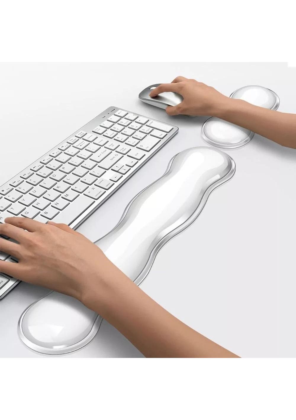Product Description:The Mouse Pad with Wrist Rest and Anti-Slip Keyboard Rest offers a perfect ergonomic solution for anyone who spends long hours working or gaming. This set includes both a keyboard wrist rest and a mouse pad wrist rest, crafted from high-quality silicone to ensure comfort and support for your wrists. The smooth surface and cold feel of the silicone material effectively reduce wrist fatigue, making it ideal for professionals and gamers alike.Designed with ergonomics in mind, the keyboard hand rest and mouse wrist rest feature a slip-resistant bottom that keeps them securely in place, no matter how intense your tasks or gaming marathons may get. You can easily adjust the position to suit your personal comfort without worrying about any sliding or shifting during use.This wrist rest set is perfect for users who often experience wrist fatigue due to prolonged computer use. Programmers, editors, designers, and office workers can all benefit from the added support, helping to maintain proper wrist posture and avoid strain.Whether you're working from home, in an office setting, or setting up your gaming station, this mouse pad and keyboard wrist rest combo is a practical and comfortable addition. It provides stability, comfort, and durability, making it suitable for a wide range of uses.Product Specification:Material: Silicone + ABSColor: Black, TransparentWrist Rest Size: 14.5 x 8 x 2cmKeyboard Rest Size: 36 x 8 x 2cmWeight: 157gFunction: Keyboard Rest for Office and GamingPackage Inclusion:1 x Wrist Rest1 x Keyboard Rest1 x Wrist and Keyboard Rest