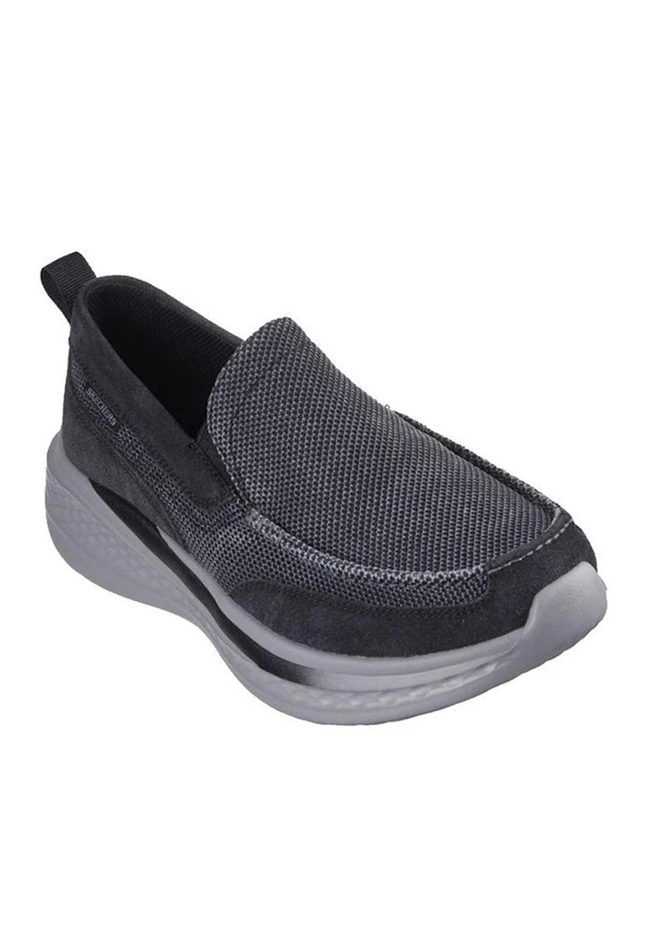 Laid-back style arrives with modern comfort in Skechers Relaxed Fit®: Slade - Munson. This laceless fit design features a knitted and suede upper with a charcoal infused Skechers Air-Cooled Memory Foam® insole and Skechers Goga Mat Arch™ cushioning for added support.