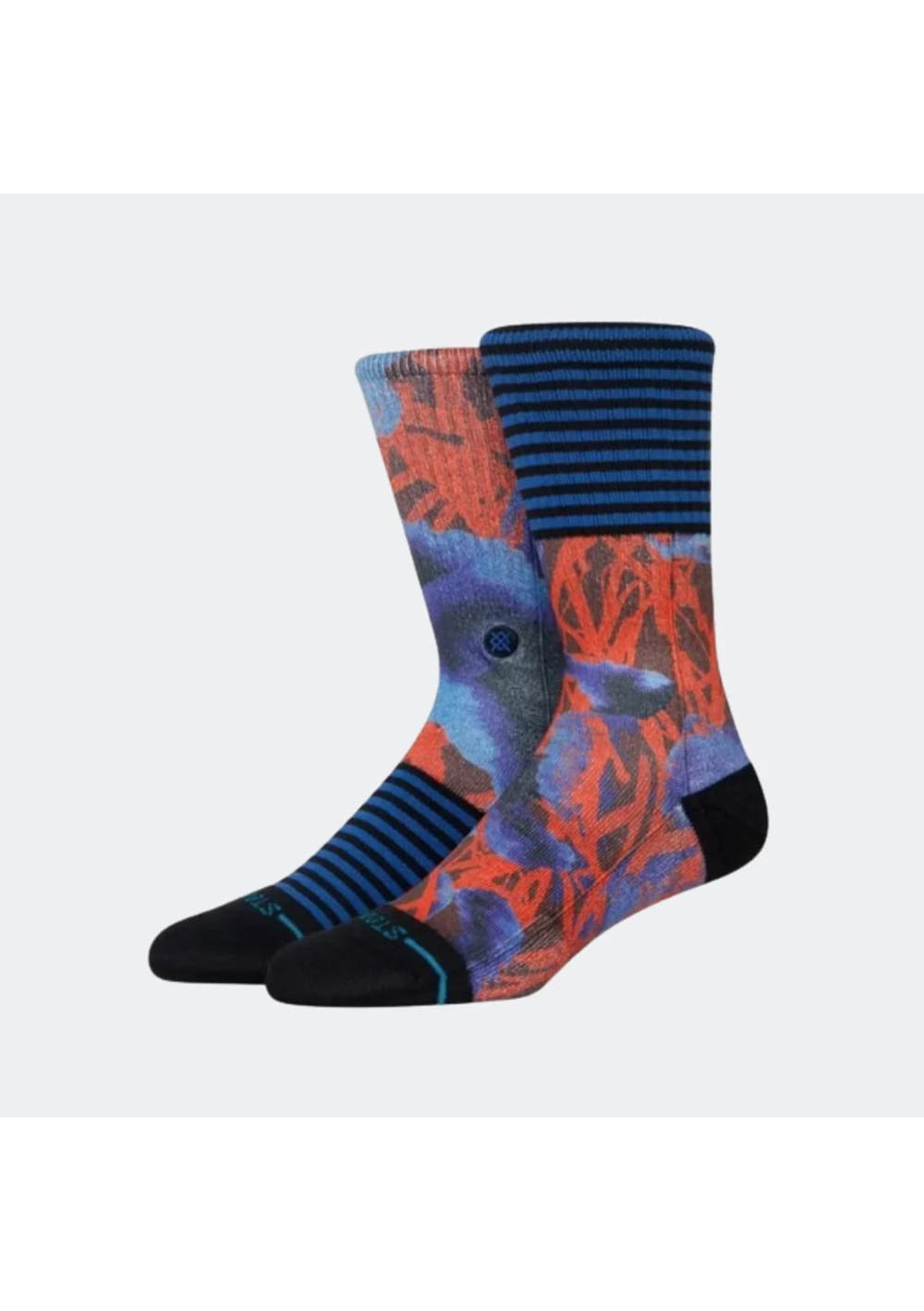 Stance x Melissa Santamaria Vibrant crews created by Mexico City based visual artist Melissa Santamaria. Inspired by her synaesthesia and the vivid colours that make up Mexico. This is the Juarez crew in a polyester blend.