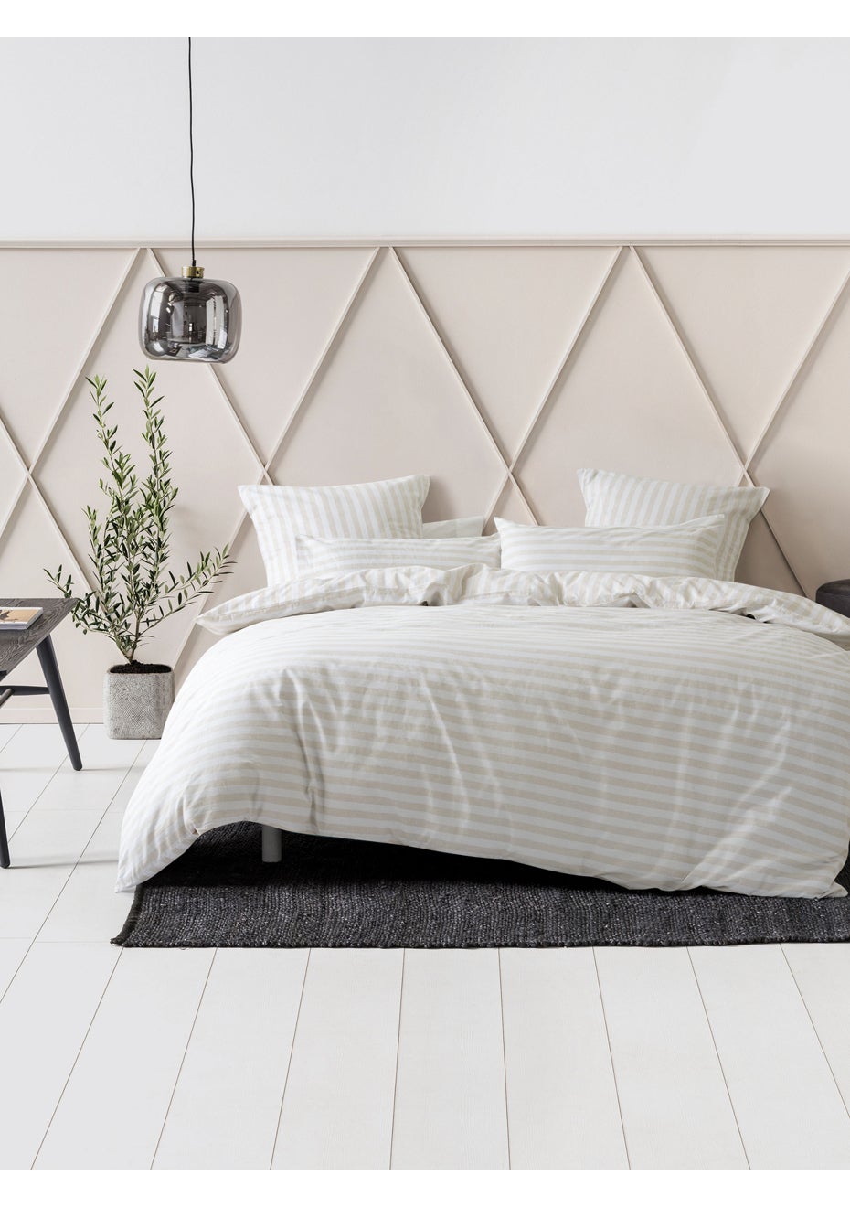 – Transform you bedroom into a cosy and stylish oasis with this reinvented classic. Printed on cotton, Charlie is fully reversable with contrasting horizontal and vertical textured stripes, giving you the option to style your bed two ways. The modish sand and white palette is perfect for all to enjoy, and also available in a selection of grey, denim and mineral.