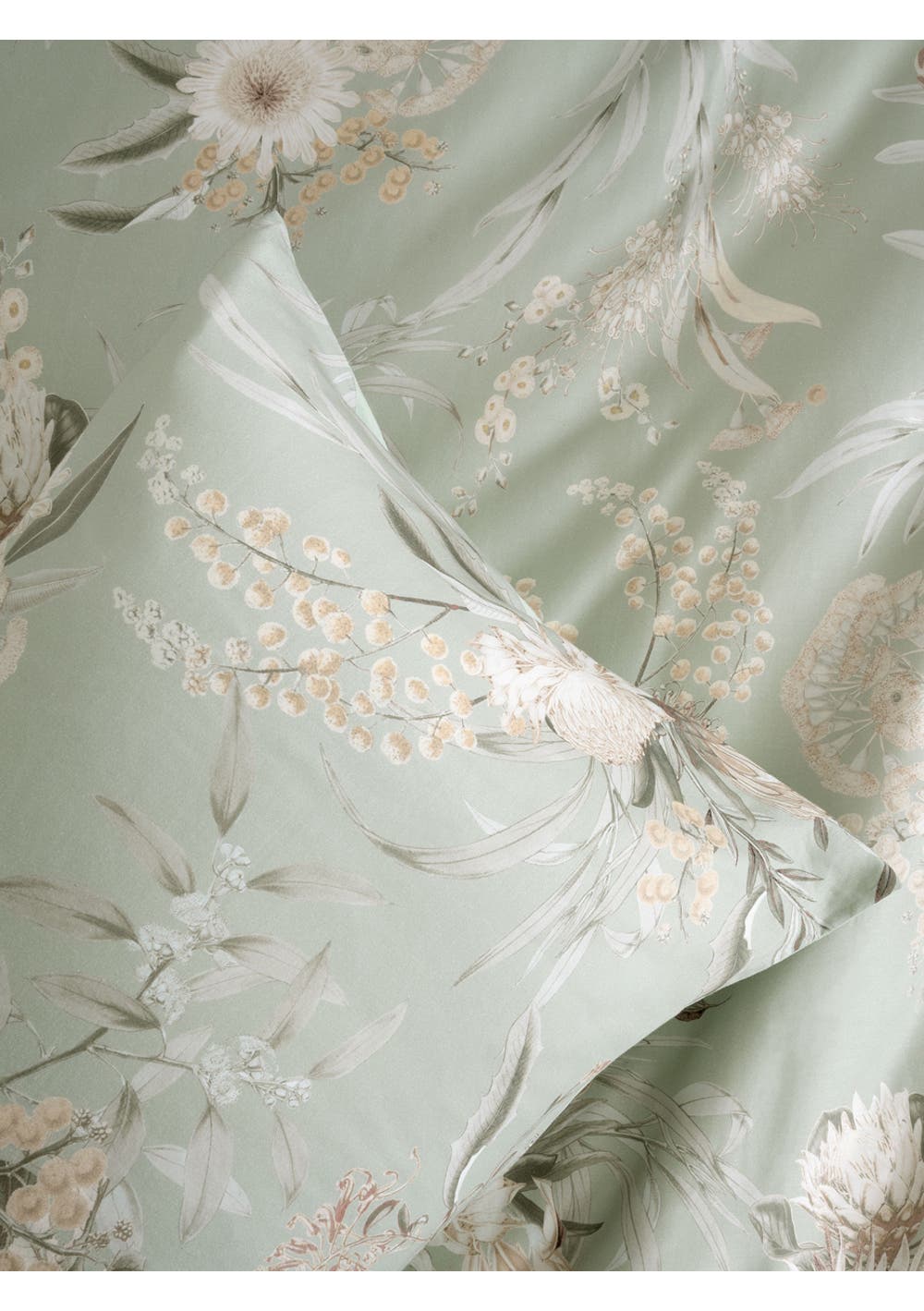 Infuse your bedroom with the understated elegance of Nella’s breathtaking bouquet display. Nella features muted botanical bouquets brimming with the finest floral blooms and foliage, artfully arranged on a soothing sage background. Printed on cotton sateen, pair with the co-ordinating European pillowcases to create a tranquil haven in your bedroom.