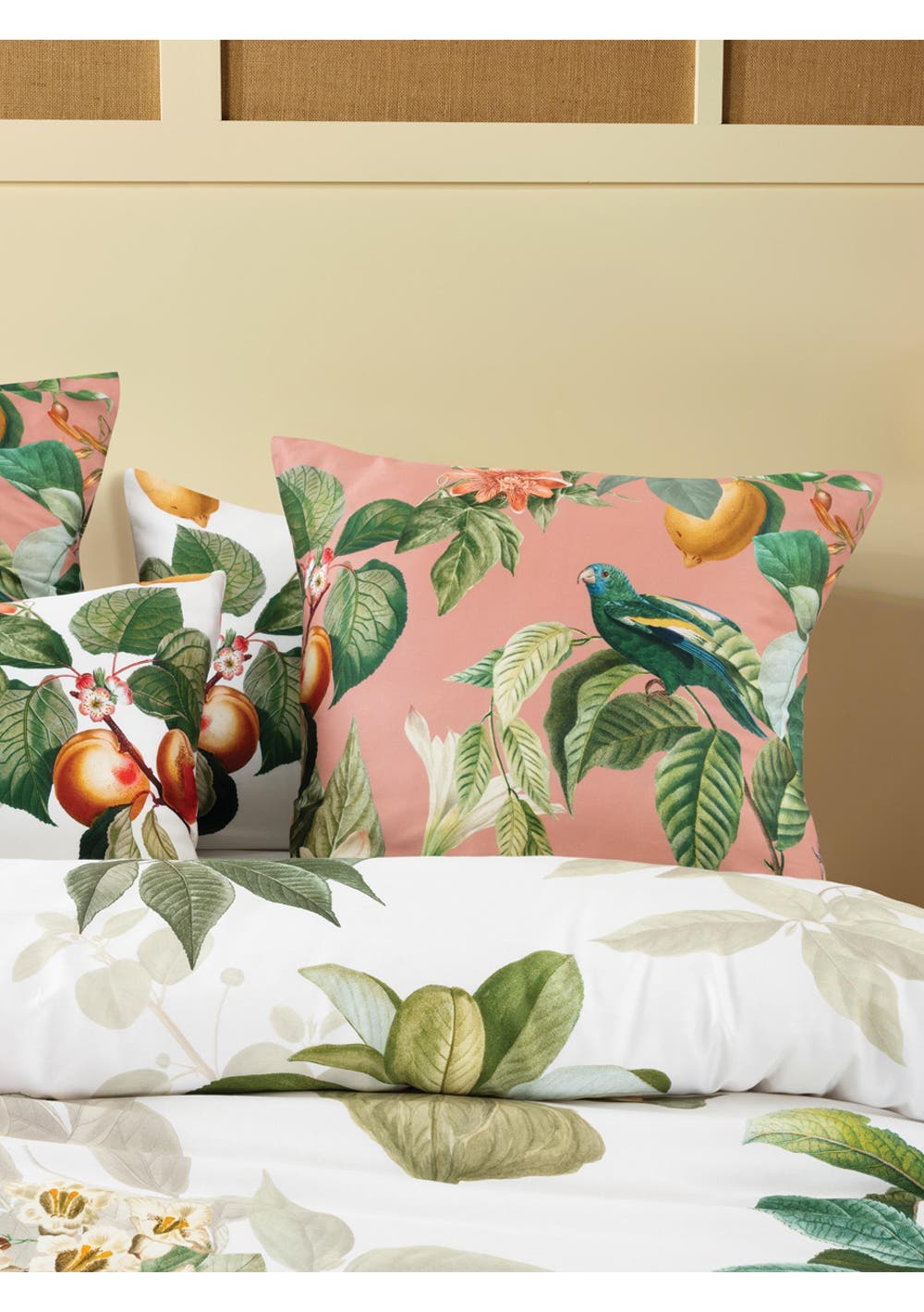 Amalfi captures the splendour and charm of Italy’s sun-kissed orchards with its fragrant, delicate citrus blossoms and jewel-like fruit. Adorned with glossy lustrous leaves, layered on a warm background of heavenly vanilla, this design is printed on luxurious cotton sateen and looks exquisite when styled with the matching European pillowcases.