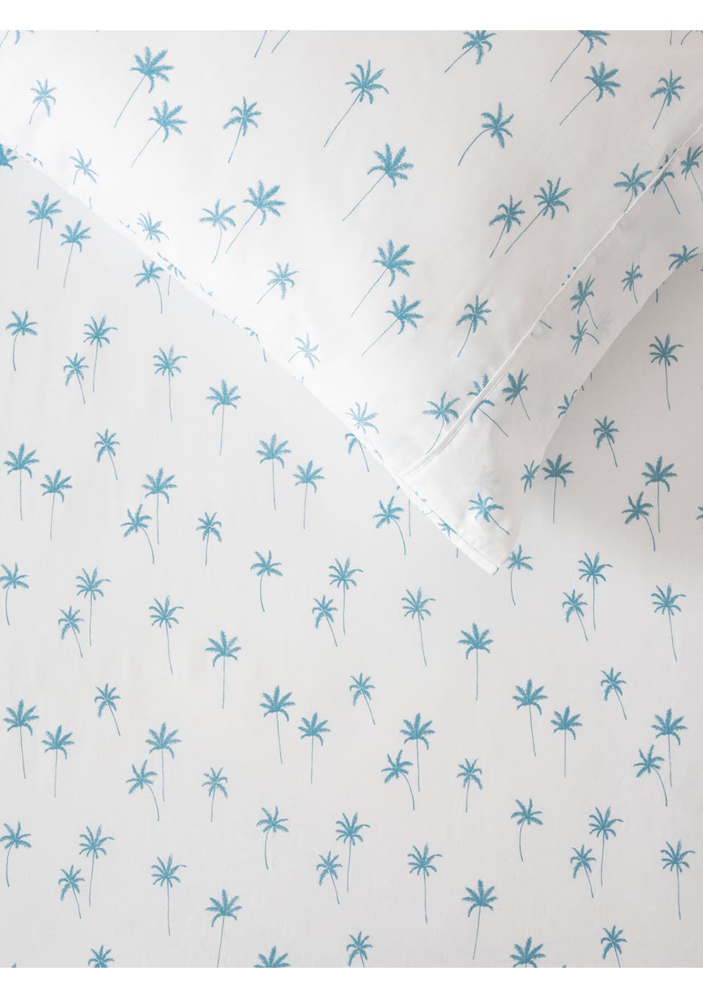 Calm your little one with the tropical serenity of the Palm fitted sheet set. This soothing design features hand-drawn palm trees in tranquil teal on a crisp white background, complemented by piping detail. Printed on 100% cotton, this design is the perfect match to the Squiggles range of duvet cover sets.