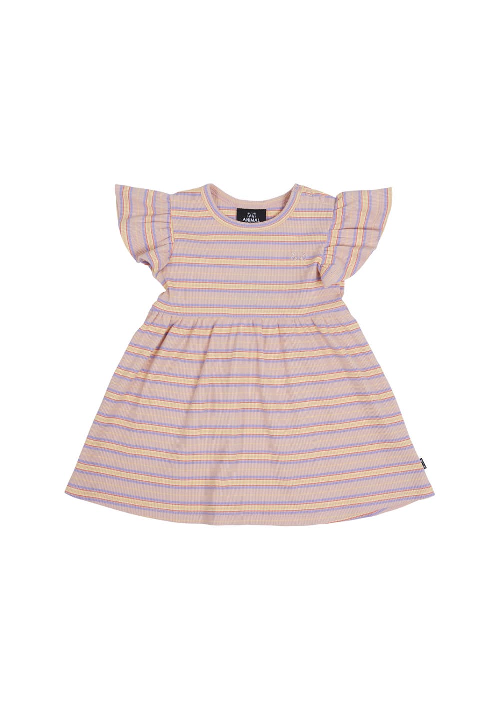 The Daybreak dress is made from 95% Cotton / 5% Elastane stripe with an all over garment wash for a soft hand feel. The dress features shoulder snaps to get easily on and off over the head with a self fabic neck band. The dress has a gathered skirt as well as a small branded embroidery in the front chest. Material: 95% Cotton / 5% Elastane