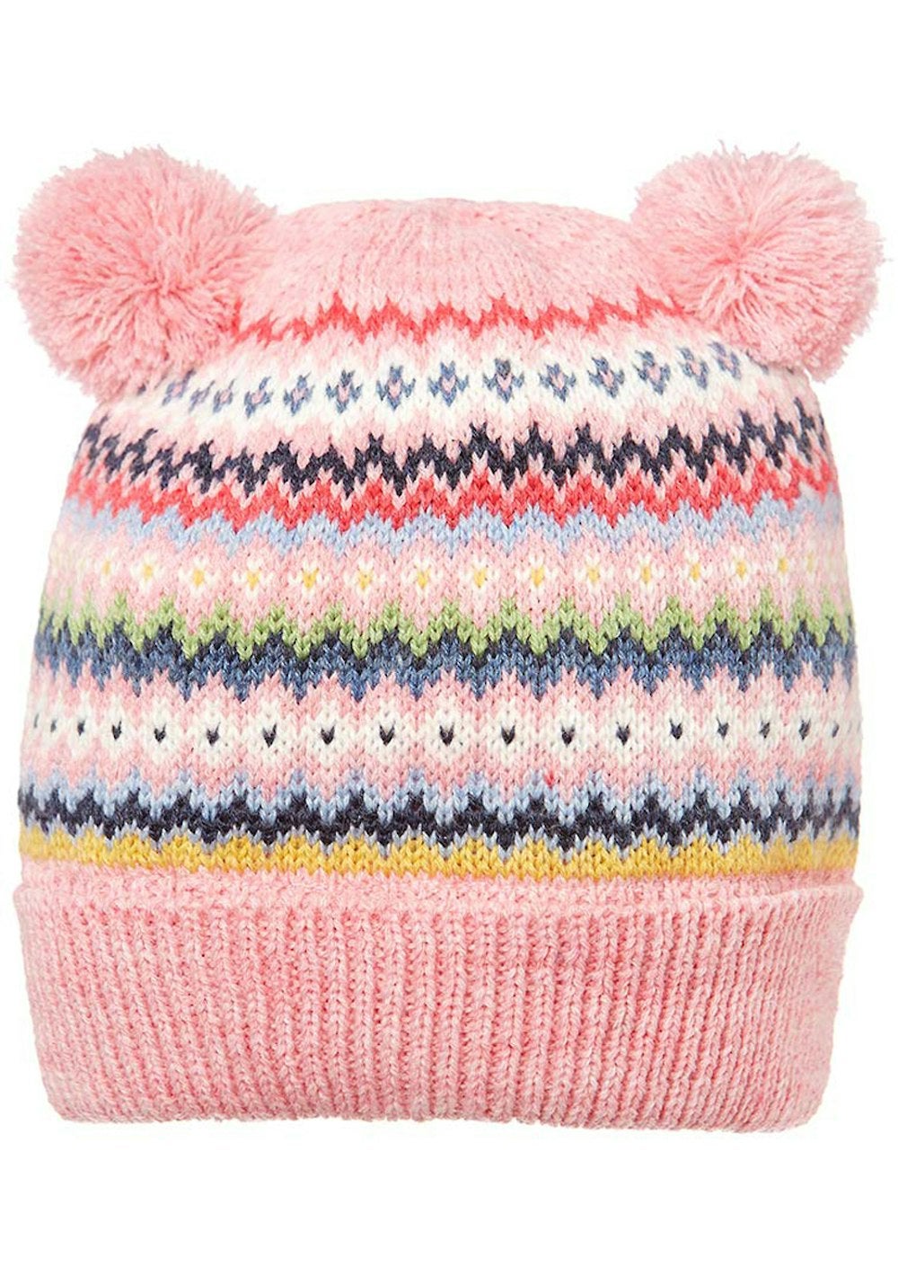 Vivid vintage inspired stripes and playful pom poms create an irresistible winter accessory.