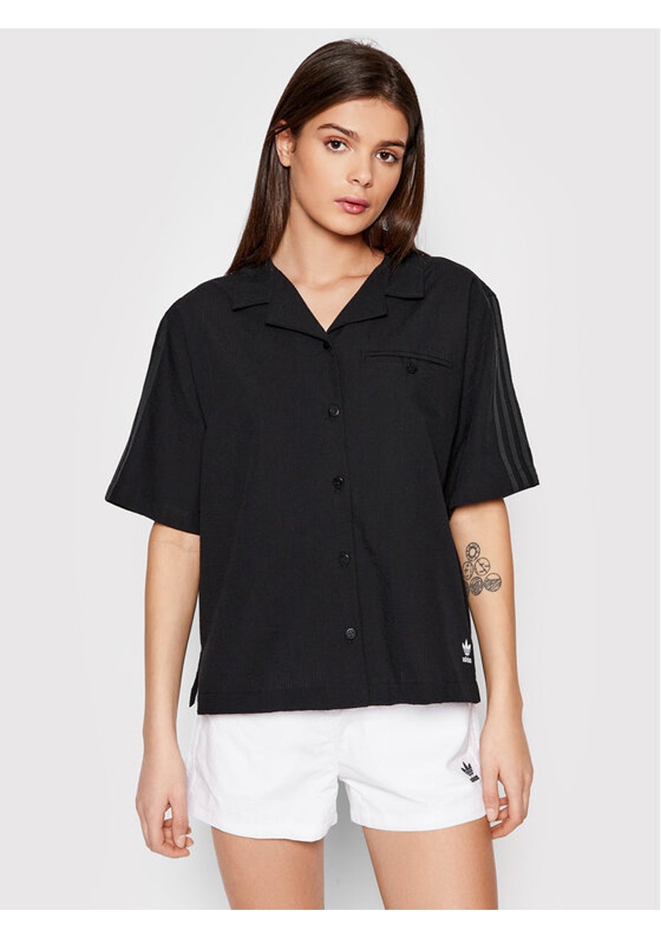 adidas Originals - Womens Adicolor Classics Poplin Top - BlackCLEARANCE