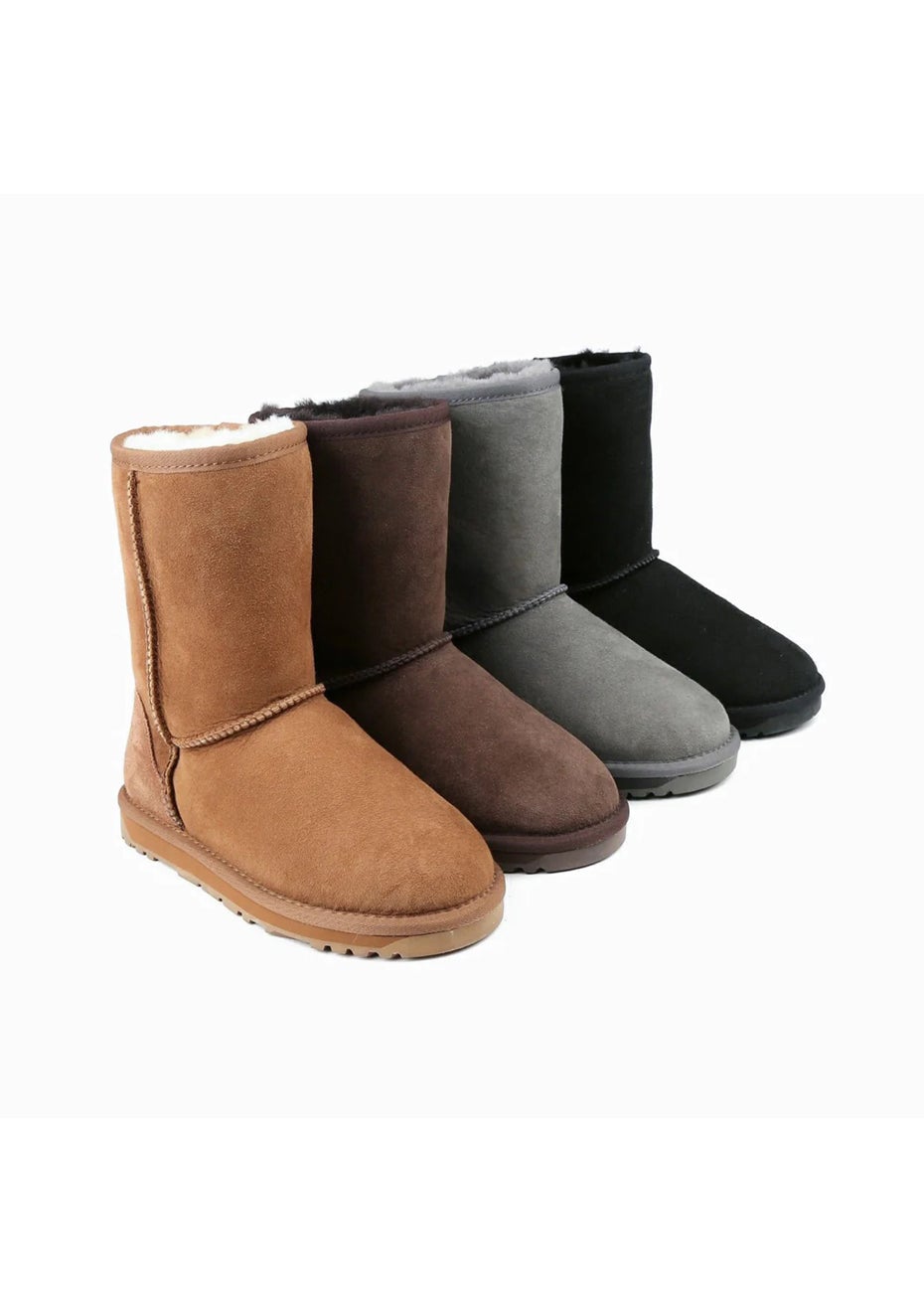 Size Guide:If you're feeling uncertain about which size is the best for you, please measure the length of your foot and add 5mm space, then compare this to our insole size guide (the end of the size options) and find the perfect fit.Please stand on a piece of paper, mark the top of your top and the back of your heel and then measure the distance between these tpoints. This is going to give you far more precise and accurate measurements.It would be a good idea to purchase a size up as the wool lining tends to up some of the room normally reserved for your feet.L means Lady's size; M means sizeStyle Number: OB385Available Sizes: 6M, 7M, 8M, 9M, 10M, 11M Available colours: GREY, CHESTNUT, CHOCOLATE, BLACK UPPER: DOUBLE FACE SHEEPSKIN LINING: SHEEPSKIN INSOLE: SHEEPSKIN OUTSOLE: EVA+RUBBER CLASSIC UGGS: A fashion-forward take on the Traditional Classic, featuring an updated design, styling and fit. With new cushion comfort innovation and tread durability. This range takes you into the future where function meets style. - Slim foot design - New design and shape - Sole tread design innovation - Cushion comfort innovation - Double-faced sheepskin - Reinforced stitching - Stain and Water-resistant Height: Up to 20cm depending on size, or just below the calf. This styles length is longer than the mini boot and shorter in length than the long style boots. Please Note: Depending on the boot size will determine the length so that the design is in proportion. The length of where the boot comes up may vary from one individual to the next based on their height and build. (WATER RESISTANT)