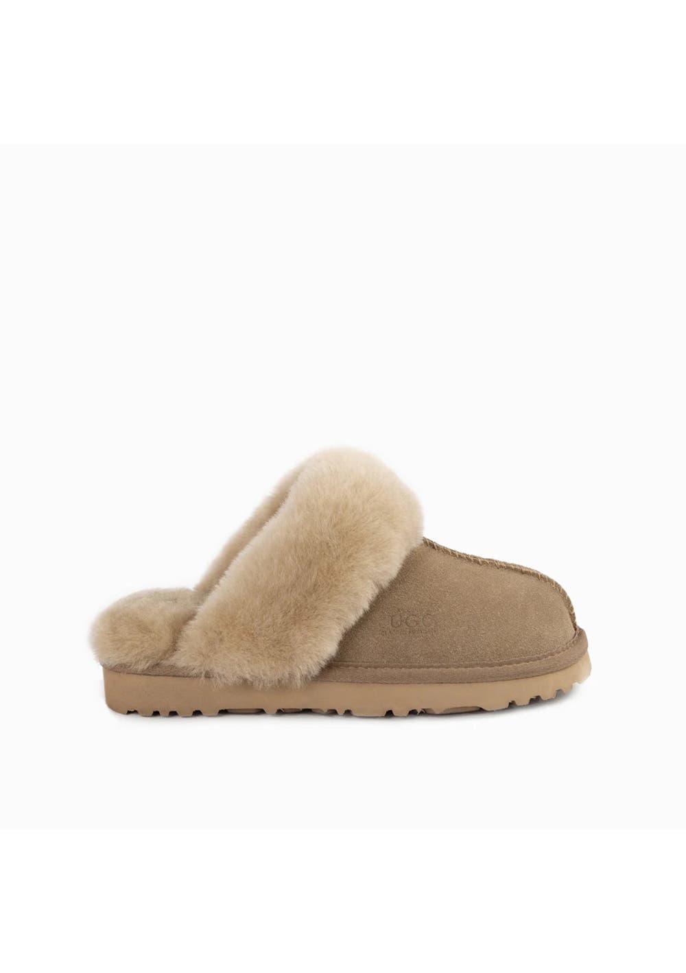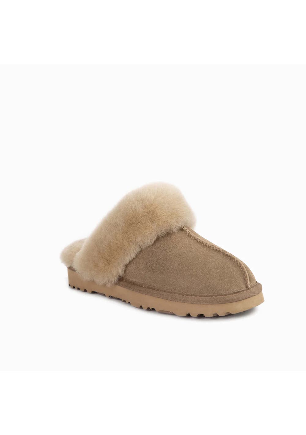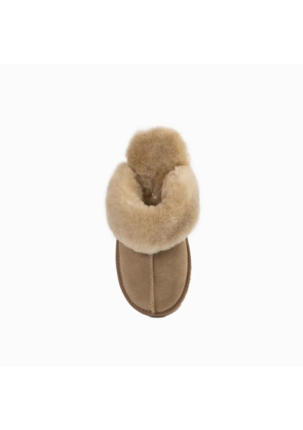Ozwear Ugg - Unisex Slippers Premium Australia Sheepskin Scuffete Suede (Cow Suede) - Olive