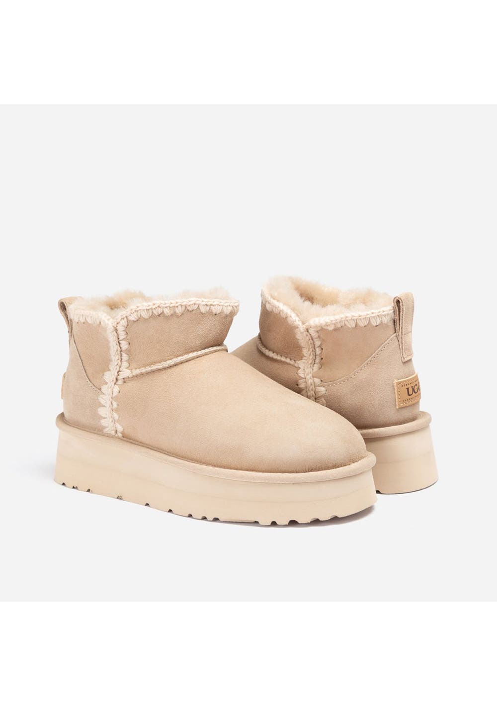 Indulge in luxurious warmth and style with Ugg Eskimo Platform Mini Boots. Crafted from premium Double Face Sheepskin, these boots offer unparalleled comfort and durability. The genuine Sheepskin lining and insole create a cozy sanctuary for your feet, ensuring heavenly warmth and cushioning. Designed with both fashion and function in mind, the sturdy Eva outsole provides excellent traction and durability for all-day wear. Elevate your winter wardrobe with these boots that effortlessly blend comfort and elegance. Ugg Eskimo Platform Mini Boots: Where premium materials meet expert craftsmanship, promising a snug fit and a fashionable statement with every step. Treat your feet to the ultimate winter indulgence. Upper: Double Face Sheepskin Lining: SheepskinInsole: SheepskinOutsole: Eva