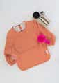Our sleeved bibs are a bit different to others. The flap at the front flips out to become a catch-all bib, or neatly tucks away to become an art smock for messy play. Made with buttery soft recycled polyester, they're waterproof, stain resistant, machine washable and odour resistant. Gone are the days of smelly, stained bibs!! Plus they come with a free wet-bag for easy transport in your nappy bag. The bibs close with two domes on the back and have elasticated sleeves to keep them on wrists and not slipping onto hands. Add one of our less-mess bibs for ULTIMATE coverage if you have a particularly messy babe! We have two sizes available across our 5 signature colours: Small: Approx age 6m to 2y (length 41.5cm, chest 33cm, sleeves 37.5cm) Large: Approx 2-4 years (length 47.5cm, chest 37cm, sleeves 44.5cm)