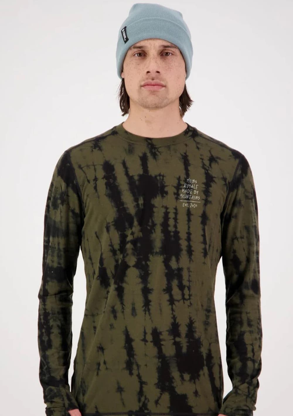 Mons Royale - Cascade Merino Base Layer Long Sleeve - Olive Tie Dye