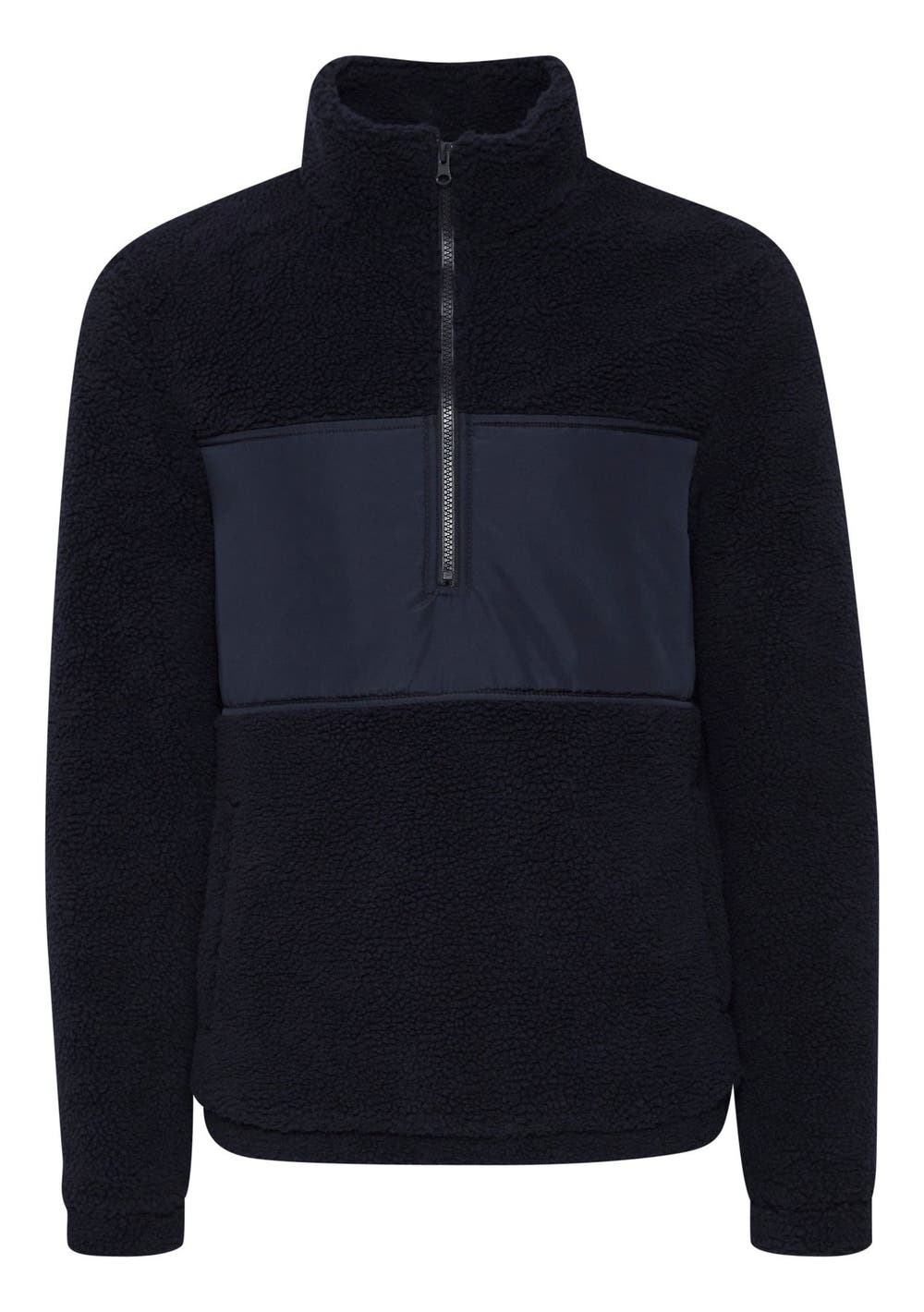 Blend Dress Blue regular fit zip up sweatshirt is comfortable and cosy. Sherpa-like finish with a contrast blue band across the middle front and upper back. Pullover style with a half zip up front and high neck. If you are in between sizes we recommend going up a size. For a better indication of fit please refer to the size guide in images. 100% Polyester