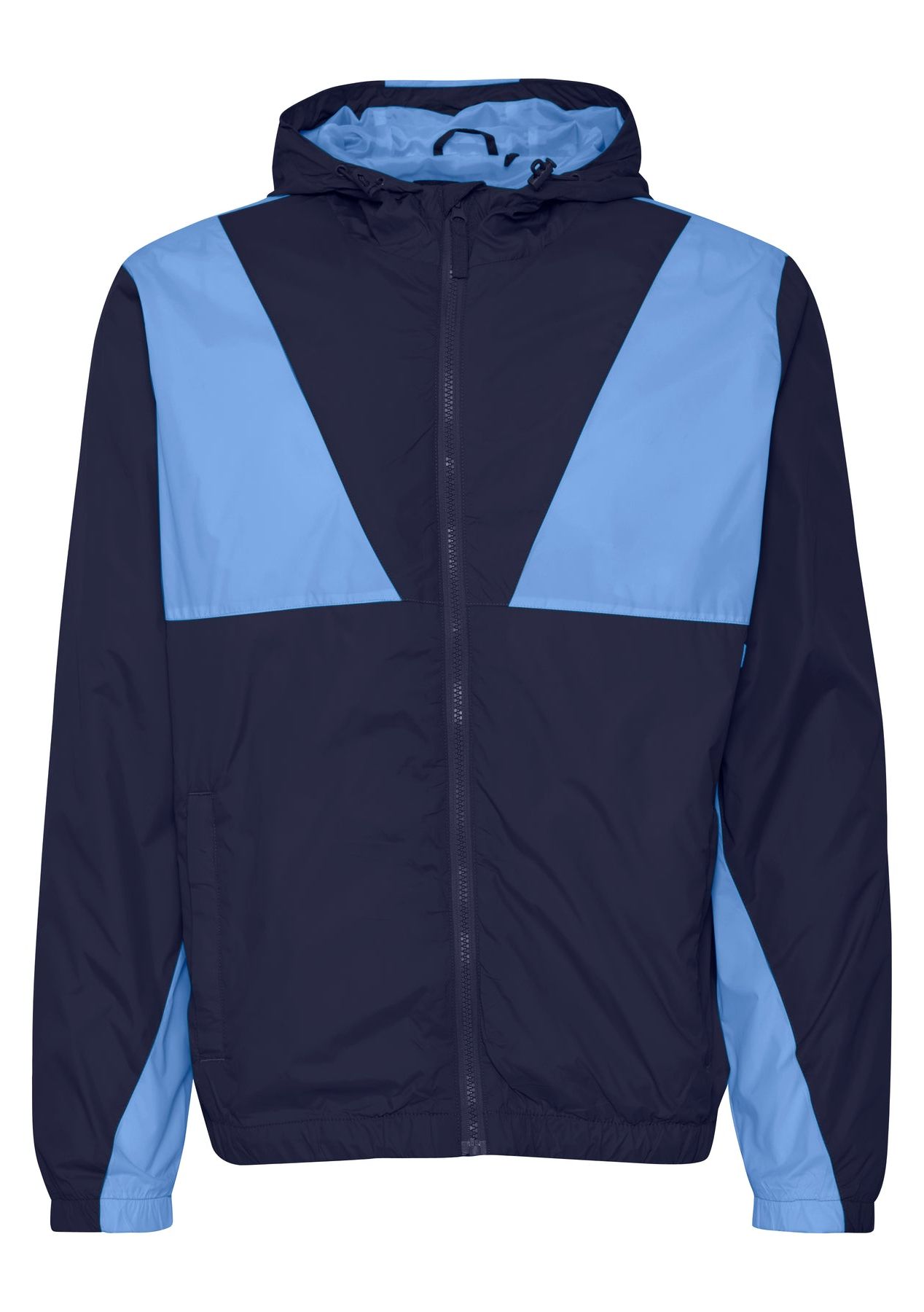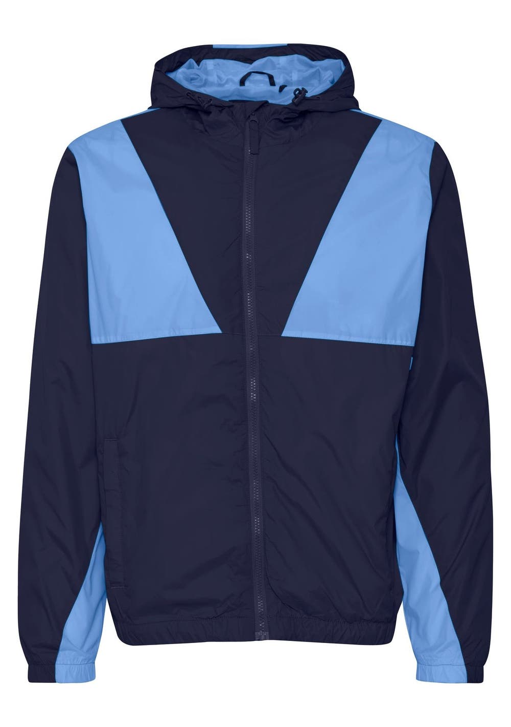 Expertly crafted with a lightweight fabric, this dark blue blend colour block jacket features a stylish light blue pattern. The zip up front and relaxed fit make it perfect for any season, adding a touch of sophistication to your wardrobe. If you are in between sizes we recommend going up a size. For a better indication of fit please refer to the size guide in images. 100% Nylon