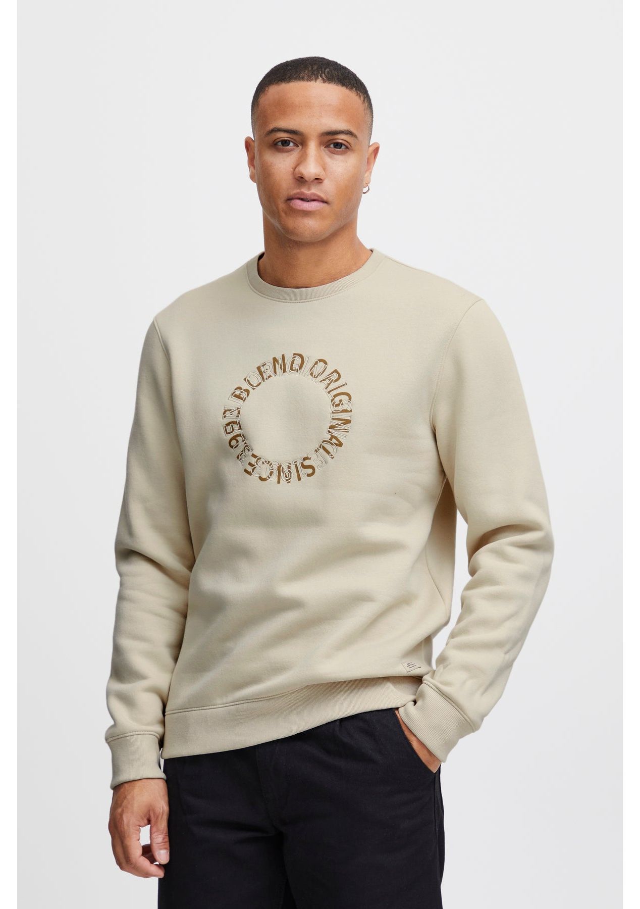 Classic crew neck sweatshirt from Blend. Regular fit with rib cuff and hem, featuring tonal chest print. 20716044 For more information on sizing please refer to the size chart in images. 100% Cotton
