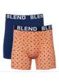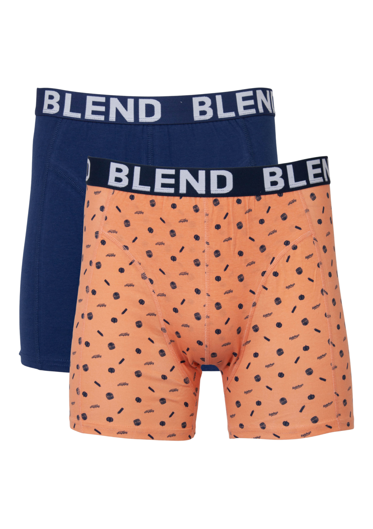 Blend underwear in multicolours an orange print and navy. Comfortable, breathable and stretchy made with cotton. Comes in a 2 pack flatpack. If you are in between sizes we recommend going up a size. For a better indication of fit please refer to the size guide in images. 20716953 95% Cotton, 5% Elastane