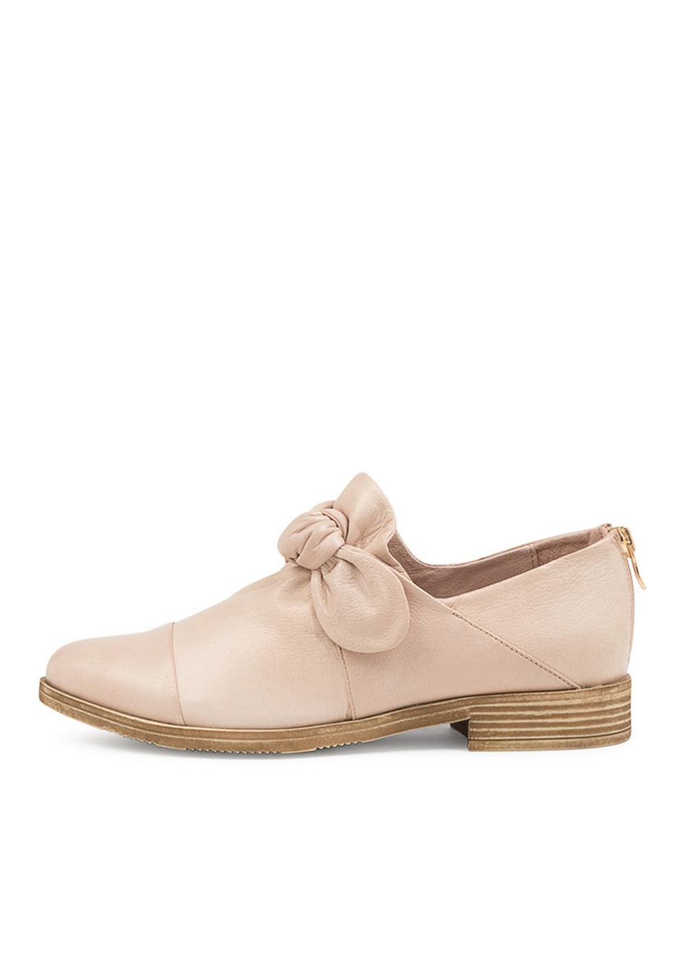 These flat leather shoes are a timeless style you can wear from season to season. KYMANI by Django & Juliette is a simple style with a rear zip and topped with a soft leather bow. Material: Patent Leather Heel Height (CM): 2.5 Women's flat shoes Leather bow Rear fastening zip Flat stacked heel