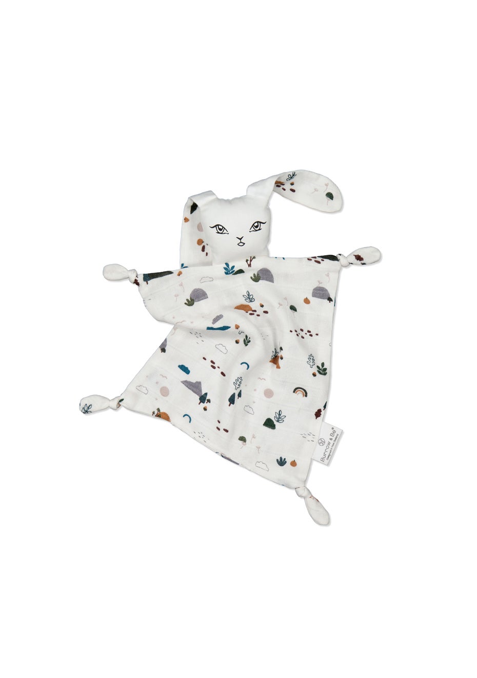 These gorgeous bunny comforters for babies are tactile and soft, and are hugely popular as a thoughtful and adorable gift, especially when paired with the matching Muslin Wrap. Many children self sooth by touching fabric or rubbing fabric against their face, these comforters are the perfect size for their little hands. Made from 100% GOTS certified organic cotton muslin and fabric with the head filled with soft polyester, you can rest easy knowing there are no nasties coming into contact with their delicate skin. All our organic cotton garments are GOTS Certified, so you can be sure of the quality you are purchasing, that there are no nasties in the processing of the cotton and that it has been responsibly farmed. Designed in New Zealand by Burrow and Be, and ethically made by our friends in India.