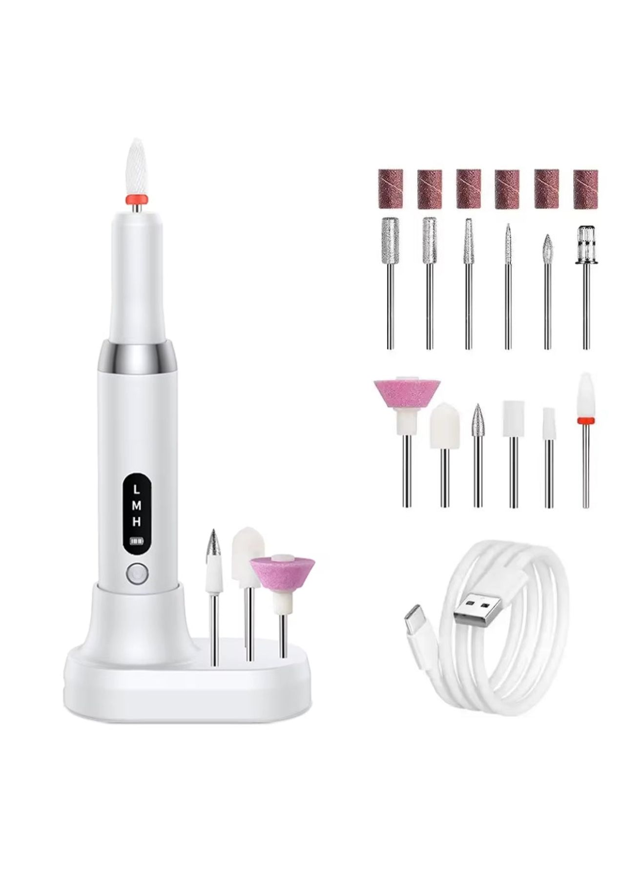 Product Description:Electric Nail Polisher Drill is a complete nail care tool with 12 attachments for shaping, polishing, grinding, and buffing. It works on gel, acrylic, and natural nails while also removing dead skin. With a speed of up to 18,000 RPM, it quickly removes nail polish and glue for a smooth, salon-quality finish. It can be used wirelessly or while charging for added convenience. The compact and lightweight design makes it easy to use at home or on the go. It charges via USB, allowing connection to a power bank or laptop for hassle-free nail care anywhere. Built for durability, this nail drill is perfect for both professionals and home users. Its powerful motor ensures efficient, long-lasting performance with easy operation.Product Specification:Material: PlasticColor: WhiteSpeed: 18000RPMCharge time: 2 hoursUsage time: 2 hoursBattery capacity: 500mAhSize: 16.8 x 11.9 x 4.9 cmWeight: 220gFunction: Electric Nail Polisher Drill Package Inclusion:1 x Electric Nail Polisher Drill 1 x Disc Grinding Head1 x Metal Grinding Head1 x Edge Sanding Head1 x Nail Surface Scrub Head1 x Sharp Sanding Strip1 x Ceramic Grinding Head1 x USB Cable1 x User Manual