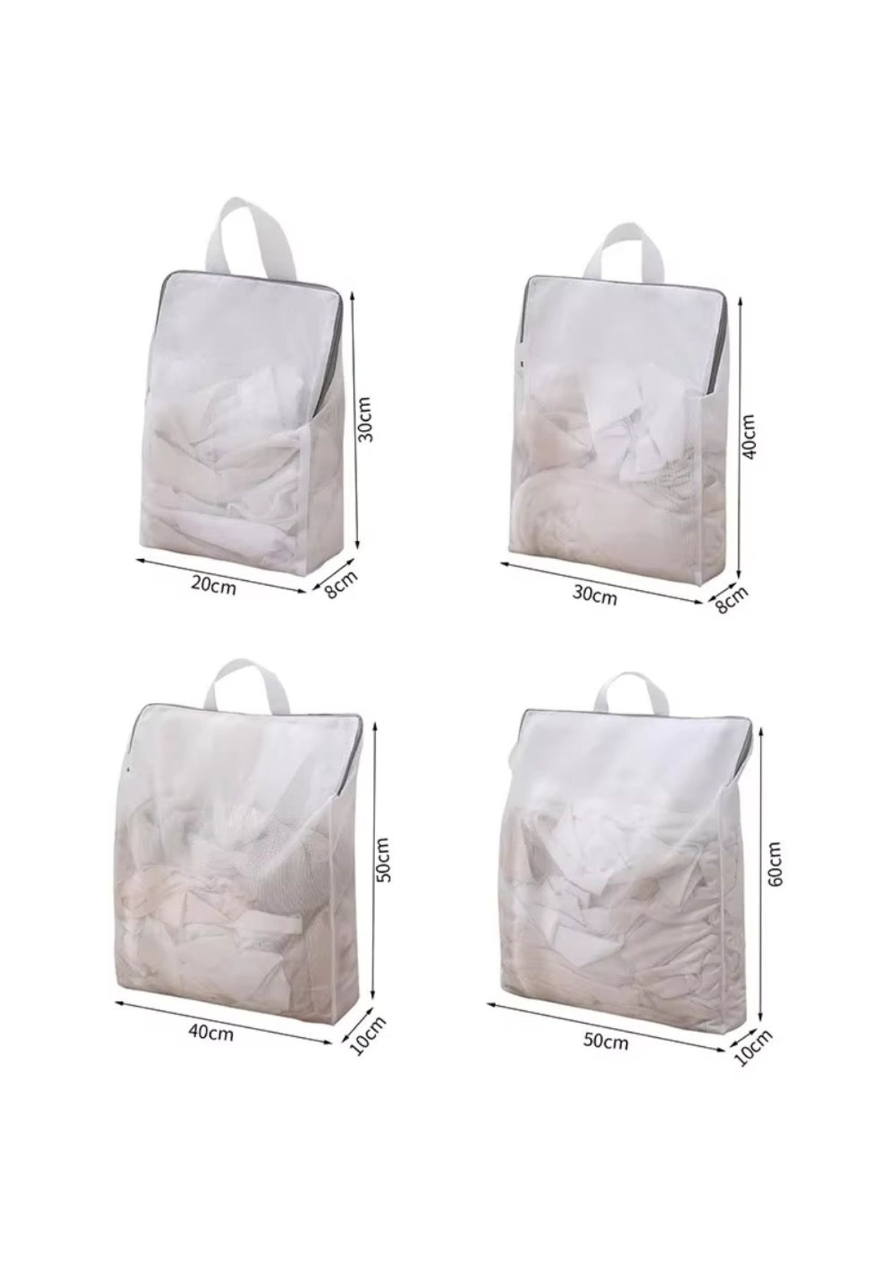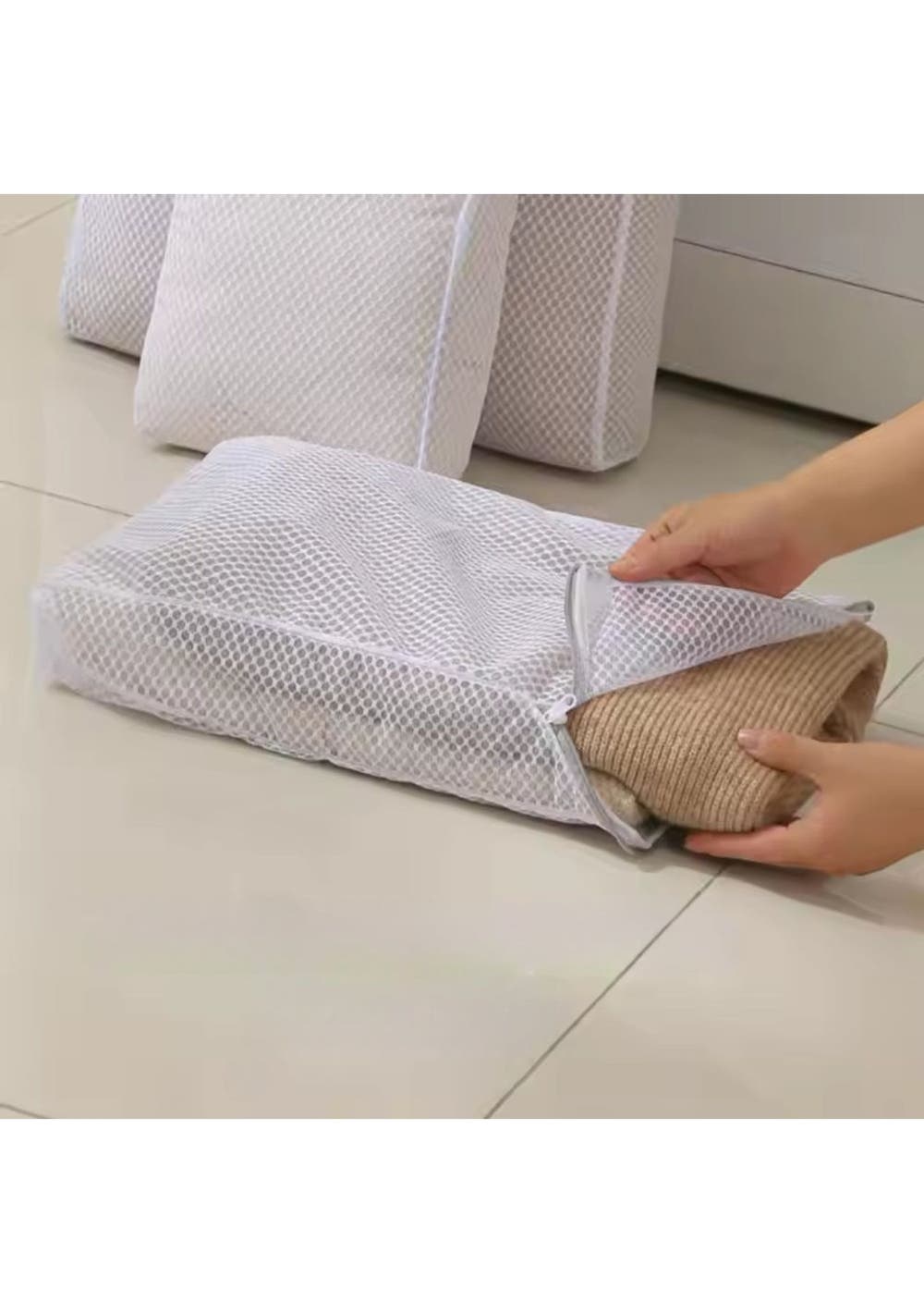 Product Description:The Reusable Mesh Laundry Bag offers a gentle and effective solution for washing delicate and everyday garments. Made from durable polyester fiber with a thickened honeycomb mesh design, it resists wear and tear while providing a hygienic and odor-free laundry experience.The hidden zipper tucks securely into the edge of the bag, preventing clothes from slipping out during washing and reducing the risk of snags or damage. This design ensures a smooth and safe laundry cycle for even the most delicate fabrics.The mesh laundry bag comes in multiple sizes to accommodate a wide variety of items, from undergarments and socks to larger pieces like sheets or jackets. This allows for convenient sorting and protection of clothes during machine washing or hand washing.The versatile mesh bag is also ideal for storage and travel. Use it to organize seasonal clothing, towels, or accessories, keeping items neatly contained. The honeycomb mesh ensures water and detergent penetrate easily, improving the overall wash quality while reducing tangling and deformation.Product Specification:Material: PolyesterColor: WhiteMesh: Coarse MeshS Size: 20 x 30 x 8 cmM Size: 30 x 40 x 8 cmL Size: 40 x 50 x 10 cm XL Size: 50 x 60 x 10 cmWeight: 123gFunction: Laundry Bag Package Inclusion:1 x Laundry Bag