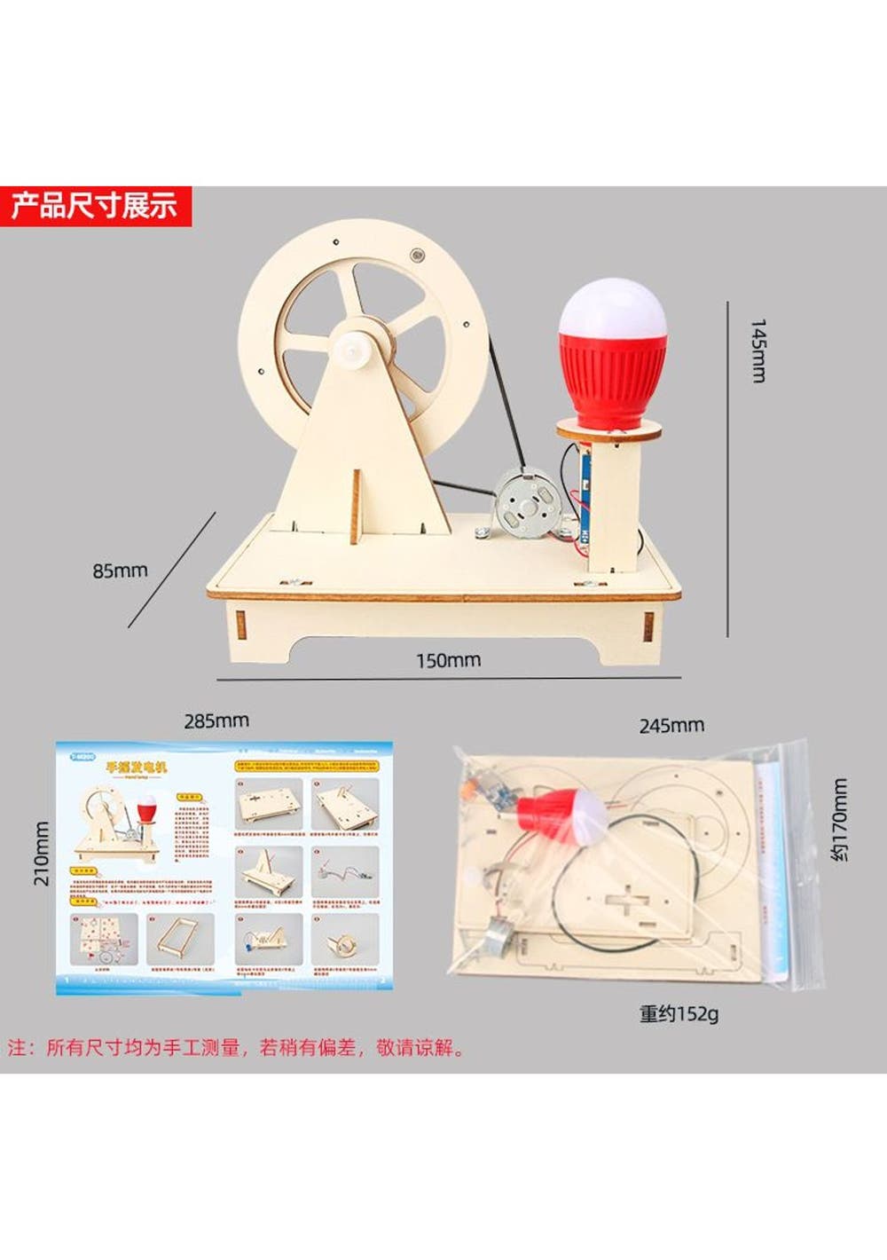 Product Description:The Hand-Cranked Generator DIY Kit is an educational toy designed to introduce children to the principles of electricity and power generation. By manually rotating the generator, kids can witness firsthand how mechanical energy is converted into electrical energy to light up a bulb. This hands-on experience makes learning fun and engaging, fostering curiosity and problem-solving skills. This DIY assembly kit comes unfinished, requiring self-assembly with simple screw fixing, wiring, and adjustments. The step-by-step assembly process helps children develop fine motor skills and an understanding of mechanical structures. It also encourages patience and logical thinking as they piece together the generator. Designed as both a learning tool and a creative project, this model allows children to experiment with electricity while strengthening their hands-on abilities. By rotating the generator by hand, they can see how energy transfer works, sparking an interest in science and engineering concepts. This interactive toy makes a great STEM learning activity for kids and parents to enjoy together. Perfect as a gift for young learners, this DIY generator kit supports science education, hobbies, and creativity development. Whether used in classrooms or at home, it provides an exciting way to enhance problem-solving skills and inspire a love for technology and innovation.Product Specification:Material: WoodColor: BrownSize: 15cm x 8.5cm x 14.5cmWeight: 119gFunction: DIY Generator Kit Package Inclusion:1 x Set of Manual generator assembly